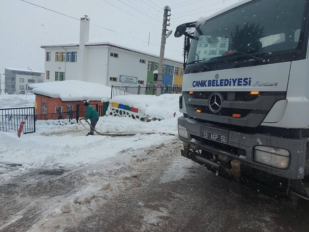 Ekipler, okul bahçeleri ve okul yollarında solüsyon ve yol tuzlama işlemi ile kar küreme ve yol açma çalışmaları gerçekleştirdi. Canik Belediye Başkanı İbrahim Sandıkçı, öğrencilerin kar yağışları, buzlanma ve don olayları karşısında herhangi bir sorun yaşamamaları adına ilçe genelinde olduğu gibi okullarda ve okul güzergahlarında karla mücadele çalışmalarına yoğun bir şekilde devam ettiklerini ifade etti.
