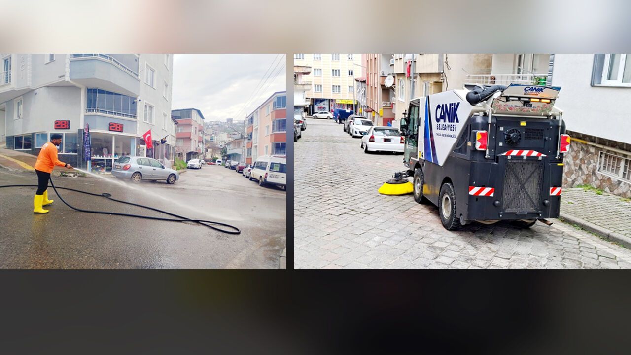Samsun’un Canik ilçesinde belediye ekipleri tarafından yürütülen temizlik çalışmaları hız kesmeden devam ediyor. İlçe genelinde cadde ve sokaklarda kapsamlı temizlik, yıkama ve mıntıka çalışmaları gerçekleştiriliyor.