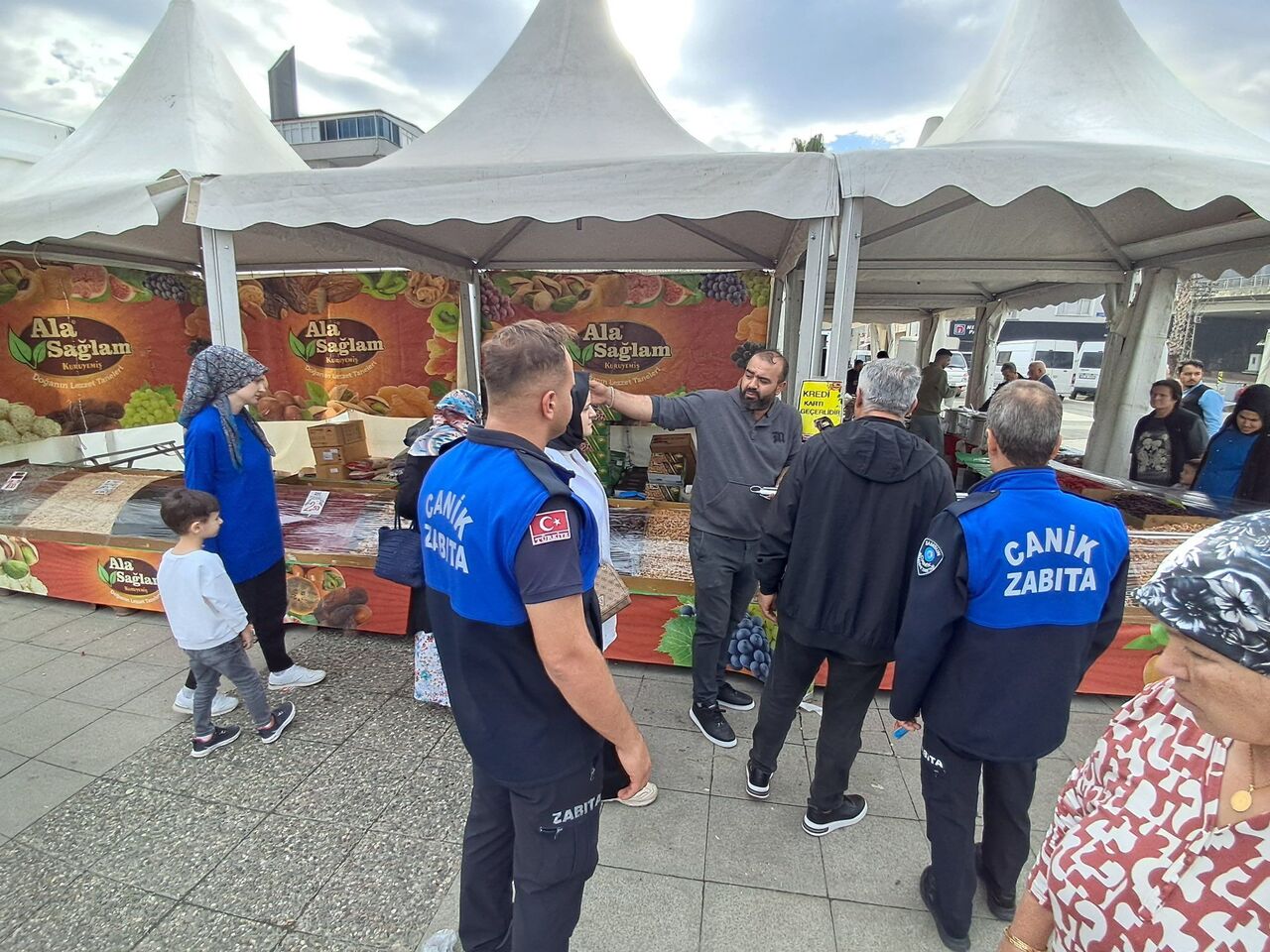 Samsun/Canik, 25 Ekim 2025 11.00: Canik Belediyesi yöresel ürün satış noktalarında denetim yapıyor.