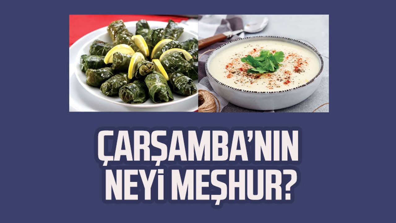 Mısır pastası, mısır çorbası, keşkek, karalahana çorbası ve sarması, kaz tiridi, yörenin en ünlü yemekleridir. Buğday unundan yapılan "Çarşamba pidesi" de son derece lezzetli, mutlaka denemelisiniz. Büyük şehirlerde Samsun ve Bafra pidesi olarak tanınan kapalı pidenin hası Çarşamba’da yapılır aslında. Eskiden has pideciler vardı, şimdi de pidecilerin yanısıra her çeşit yemek servisi veren dükkanlarda da bir pide fırını bulunuyor. İnce açılan pide hamuru kıymalı, peynirli, çökelekli iç malzeme yerleştirildikten sonra kapatılıyor ve fırına sürülüyor. Odun fırınında pişirilen pide, üzerine tereyağı sürülerek servis yapılıyor. Açık pide çeşitleri de mevcuttur. Pastırmalısı, yağlı yumurtalısı en çok rağbet edilenlerin başında geliyor.