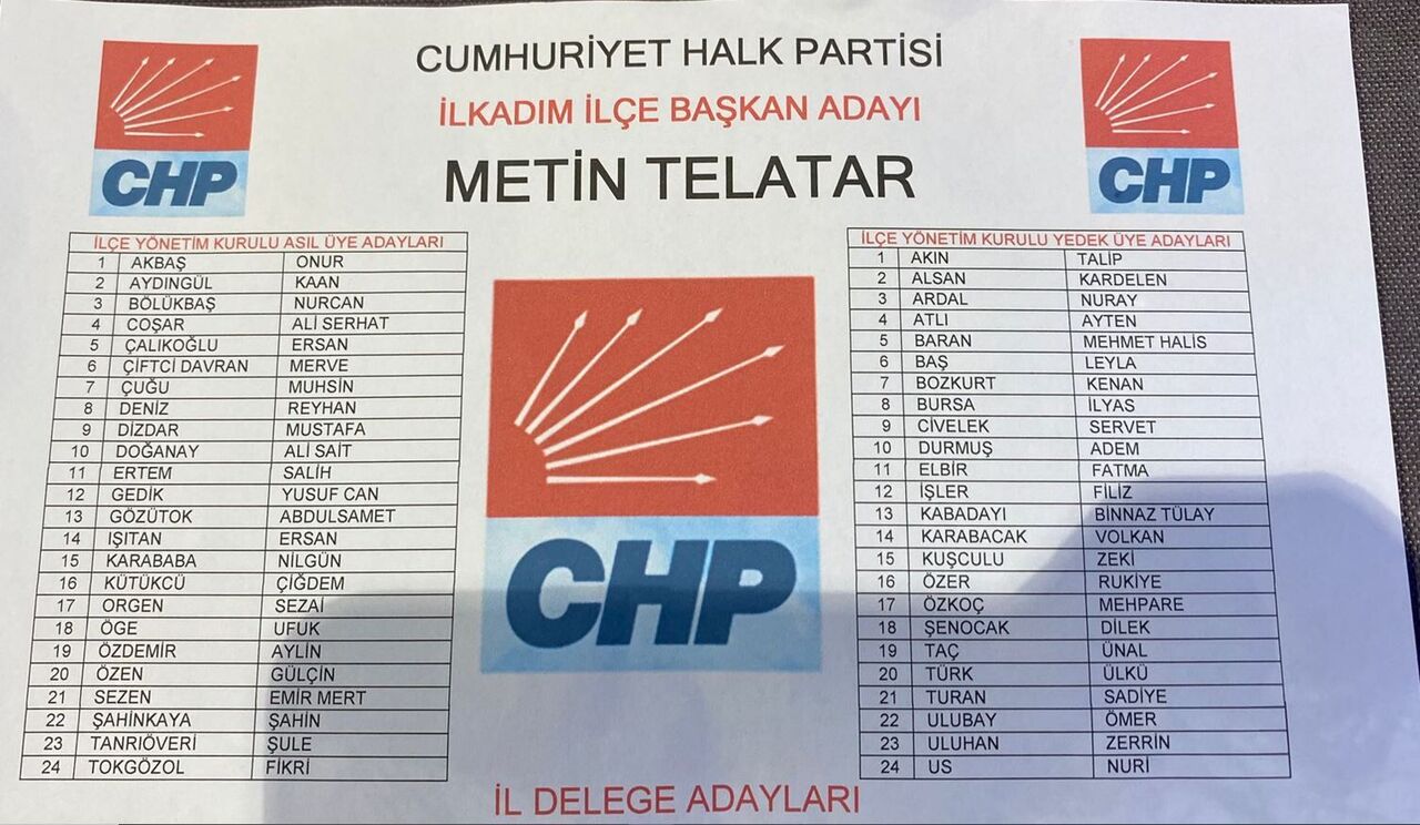 CHP İlkadım İlçe Başkanlığı 6. Olağan Kongresi'nde Metin Telatar ve Temel Tataroğlu başkanlık için yarıştı. Daha önce görevden alınan Metin Telatar oyların çoğunluğunu alarak yeniden başkan oldu.