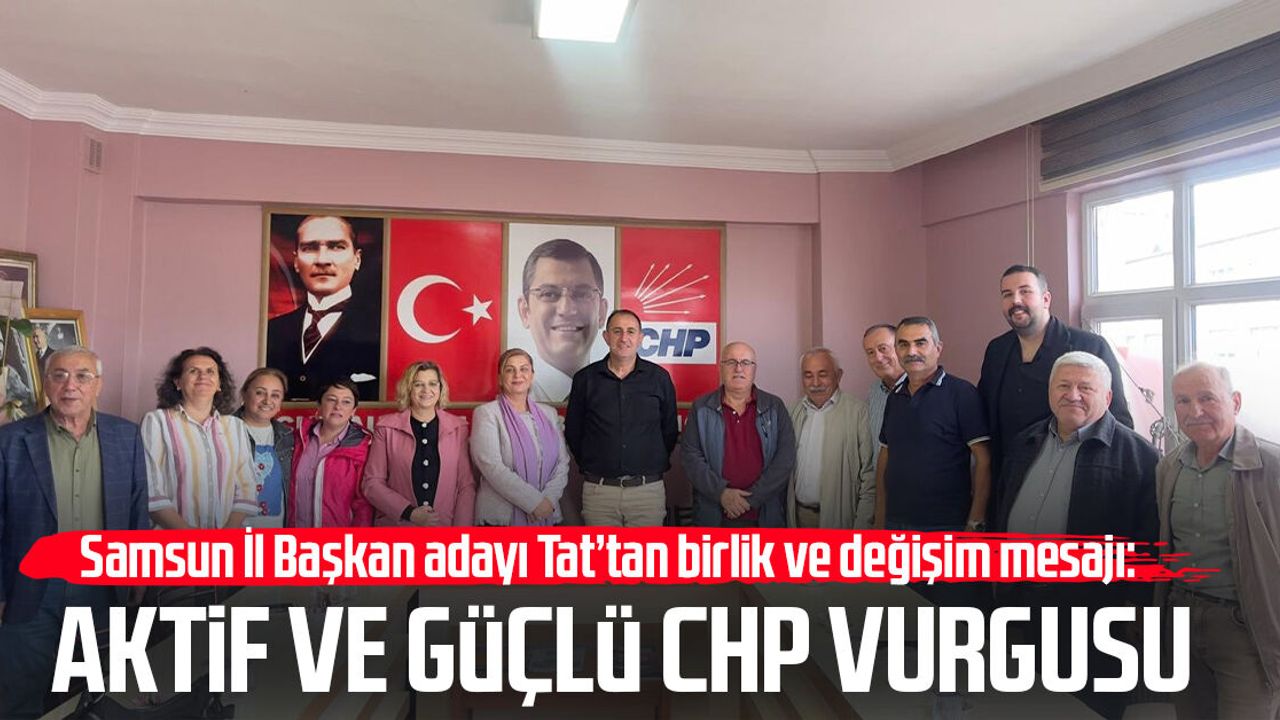 Parti içi demokrasinin önemine de değinen Tat, adil, liyakate dayalı ve şeffaf bir yönetim anlayışı oluşturacaklarını belirterek, “Parti içi yarışlarda adil ve liyakata dayalı bir ortam sağlayacağım. Samsun'un her mahallesinde, her sokağında aktif ve görünür bir Cumhuriyet Halk Partisi olacak” dedi.