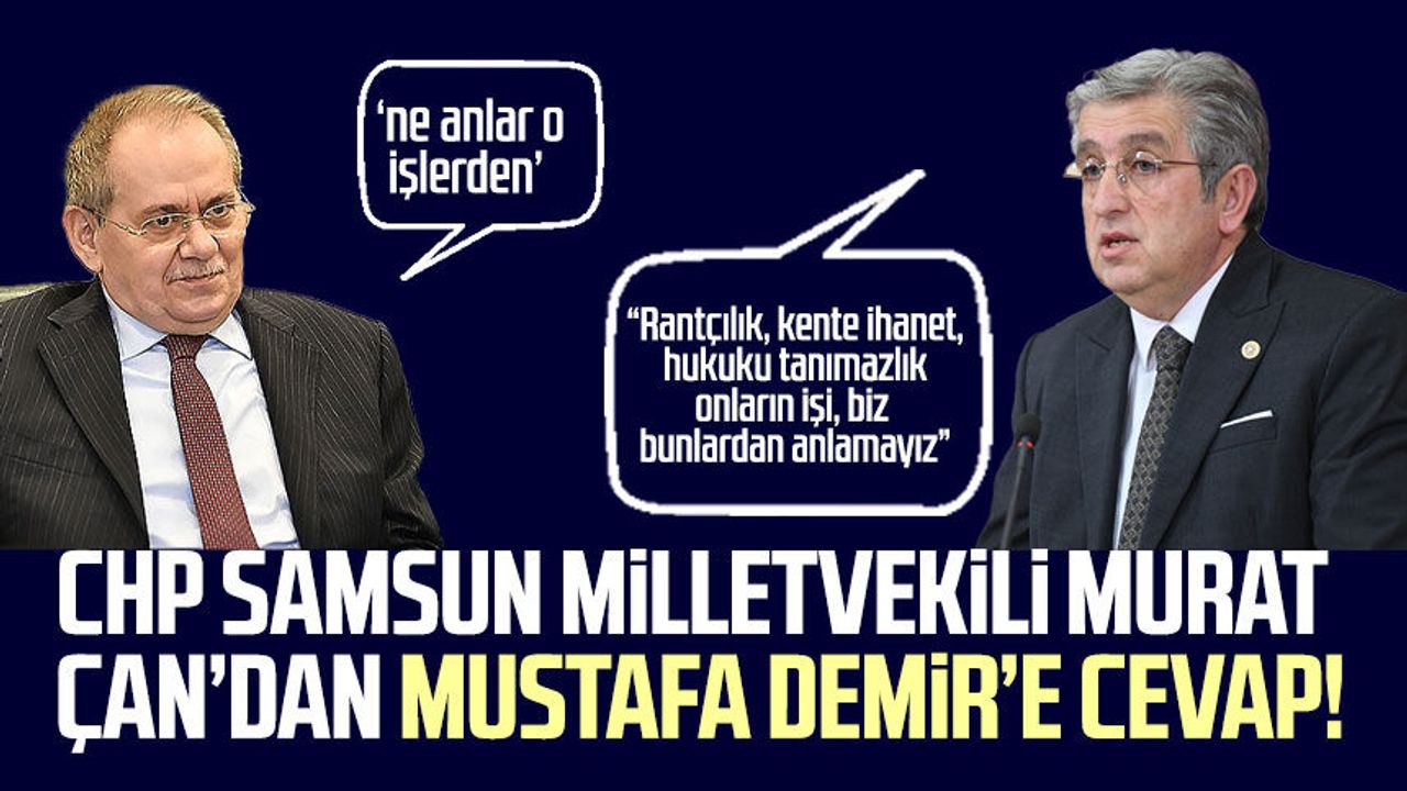 CHP Samsun Milletvekili Murat Çan, TBMM’de düzenlediği basın toplantısında, Atakum’daki marina sahasına yapılmak istenen dolgu projesi ile ilgili değerlendirmelerde bulundu ve projenin akıl dışı ve imar rantı yaratma amacı güttüğünü öne sürerek, Mustafa Demir'e tepkisini dile getirdi.