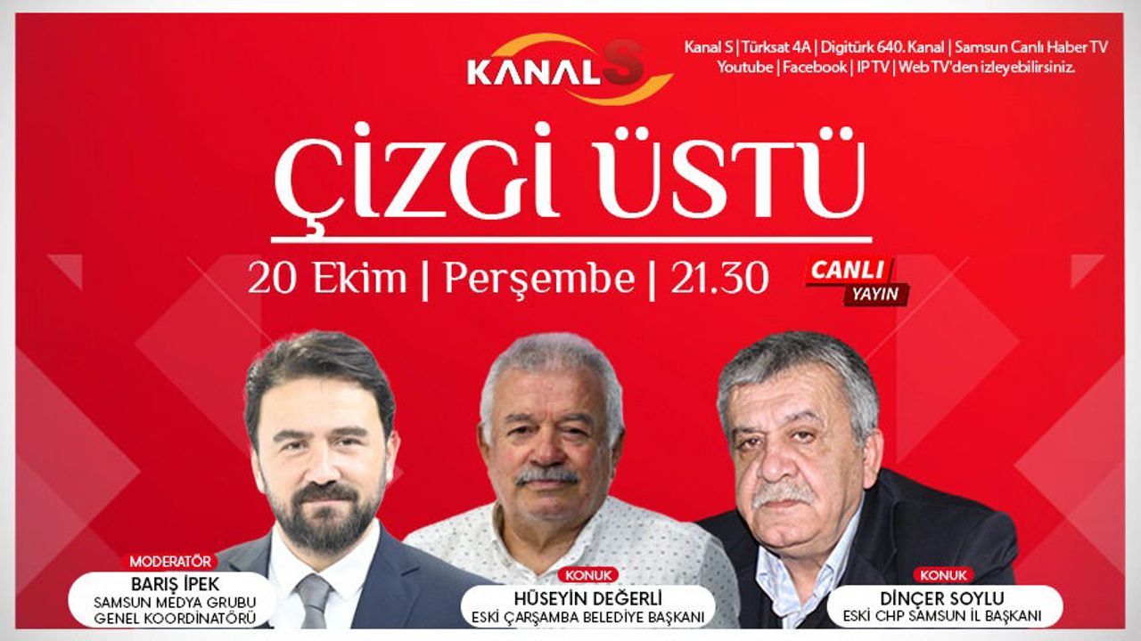Genel Yayın Yönetmeni Barış İpek'in moderatörlüğünde Çizgi Üstü programına Eski Çarşamba Belediye Başkanı Hüseyin Değerli ve Eski CHP Samsun İl Başkanı Dinçer Soylu konuk oluyor