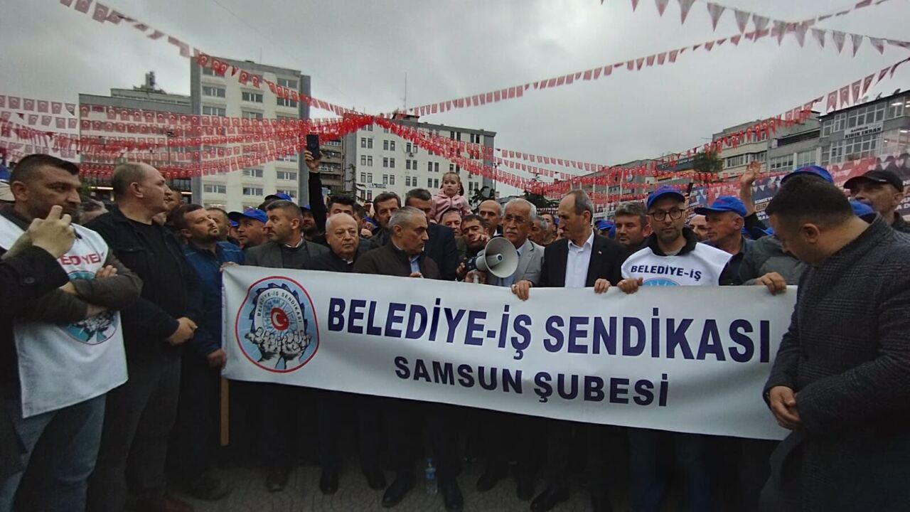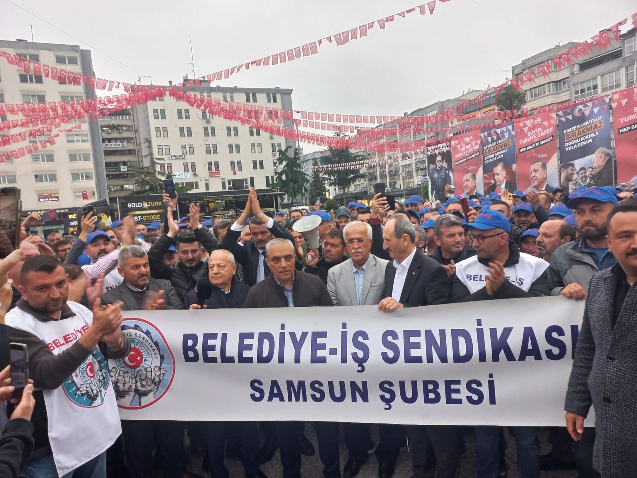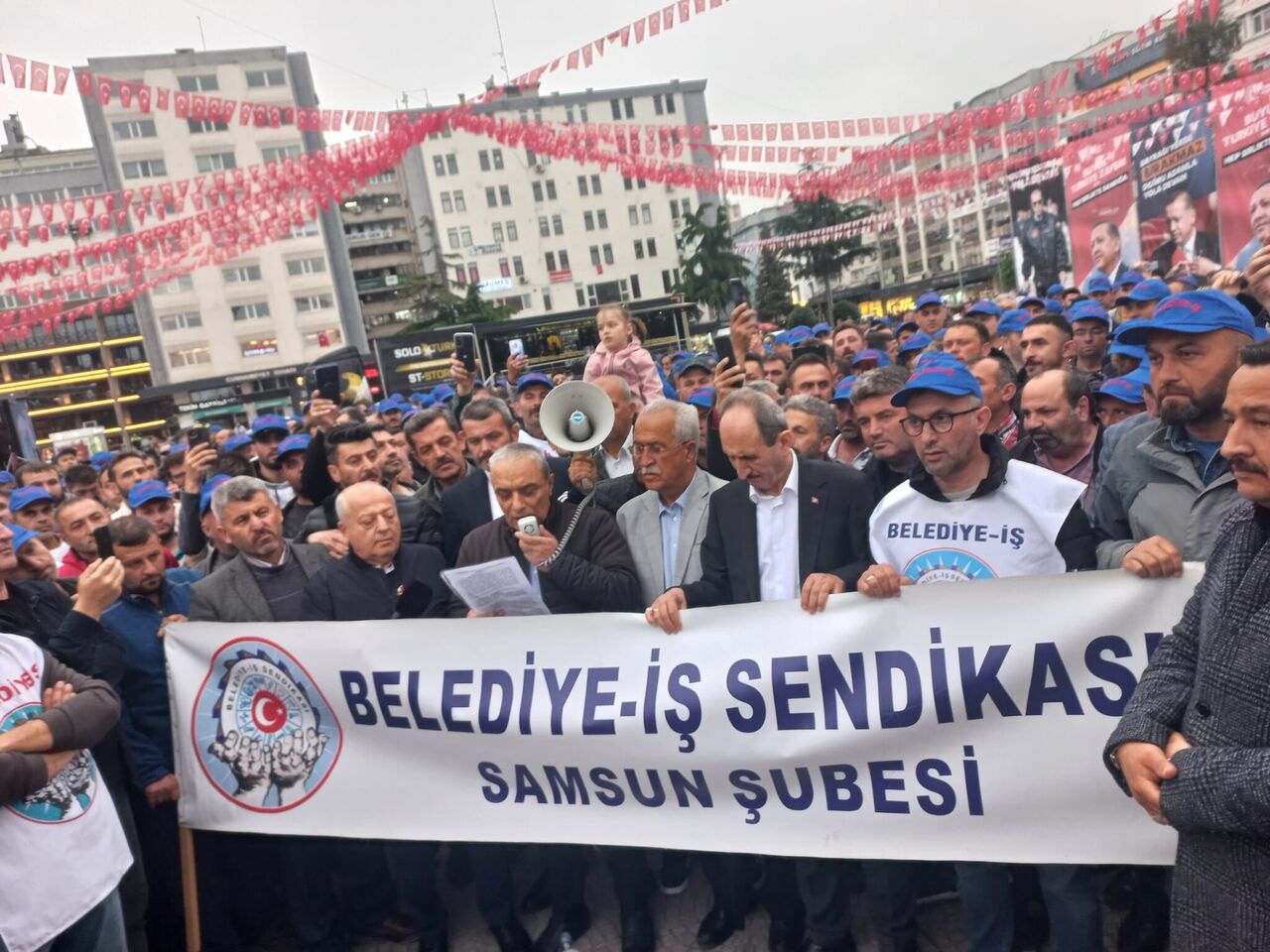 Cumhuriyet Meydanı'nda işçiler davullu zurnalı eylem yaparken, Belediye-İş Sendikası Samsun Şube Başkanı İlyas Yiğit tarafından yapılan basın açıklamasında ise şu ifadelere yer verildi: "2010 yılında kamuda çalışan taşeronlara kadro verilirken, belediyedeki taşeron işçiler de belediyelerin şirketlerinde istihdam edildi. Yani belediyede çalışan taşeron işçilere kadro verilmedi. Türkiye'deki belediyelerde çalışan yaklaşık 1 milyon şirket işçisine şartsız, ön koşulsuz kadro istiyoruz. 52 günlük ilave tediyeden biz de yararlanmak istiyoruz. Bizlere üvey evlat muamelesi yapılmasından bıktık. 1 milyon belediye işçisi insanca yaşayacak ücretleri almayı hak etmiyor mu? 28 Mayıs'ta yapılacak ikinci tur seçimlerine kadar bu mağduriyetimizin giderilmesini bekliyoruz. Yaklaşık 1 milyon belediye işçisinin 28 Mayıs'ta oy kullanacağının göz ardı edilmemesini umuyoruz" dedi.