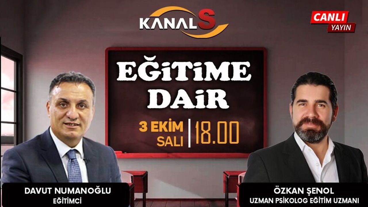Uzman Psikolog- Eğitim Danışmanı Özkan Şenol'un konuk olduğu Davut Numanoğlu’nun moderatörlüğünde Eğitime Dair programı 3 Ekim Salı günü 18.00’de Kanal S’de ! ??