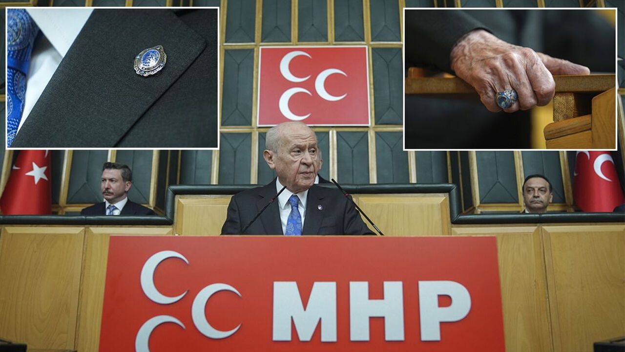 MHP Genel Başkanı Devlet Bahçeli, partisinin TBMM’de düzenlenen grup toplantısında yaptığı değerlendirmelerin yanı sıra tercih ettiği aksesuarlarla da dikkatleri üzerine çekti. Toplantı sırasında kürsüye çıkarken taktığı yüzük ve yakasındaki rozet, taşıdığı sembolik anlam ve tasarım detaylarıyla siyasi kulislerde ve kamuoyunda konuşulan unsurlar arasında yer aldı.