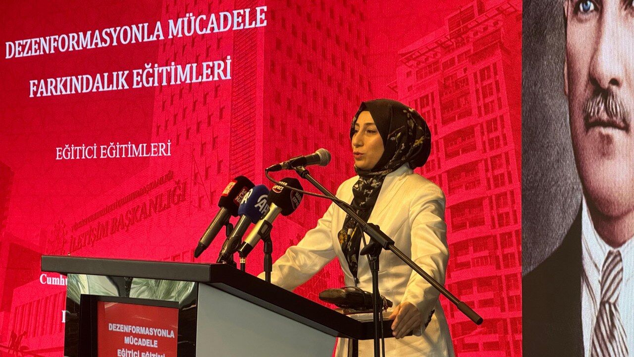 "Dezenformasyonla Mücadele Eğitici Eğitimi" sunumu yapan Cumhurbaşkanlığı İletişim Başkanlığı Dezenformasyonla Mücadele Merkezi Uzmanı Dr. Ümmühan Yücel ise dezenformasyonun çok büyük bir tehdit olduğunu dile getirdi.