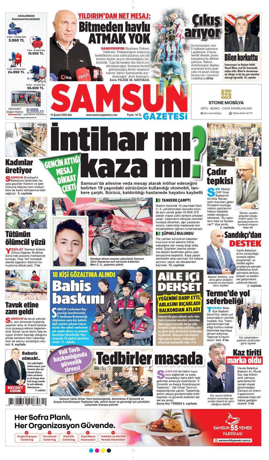 10 Şubat Salı Samsun Gazetesi