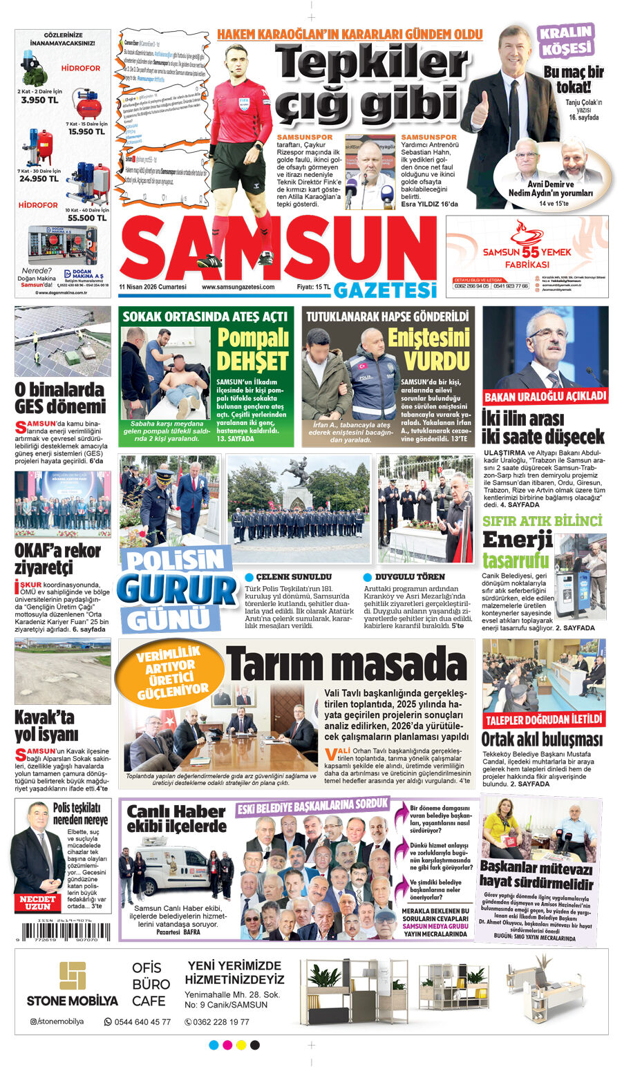 11 Nisan Cumartesi Samsun Gazetesi