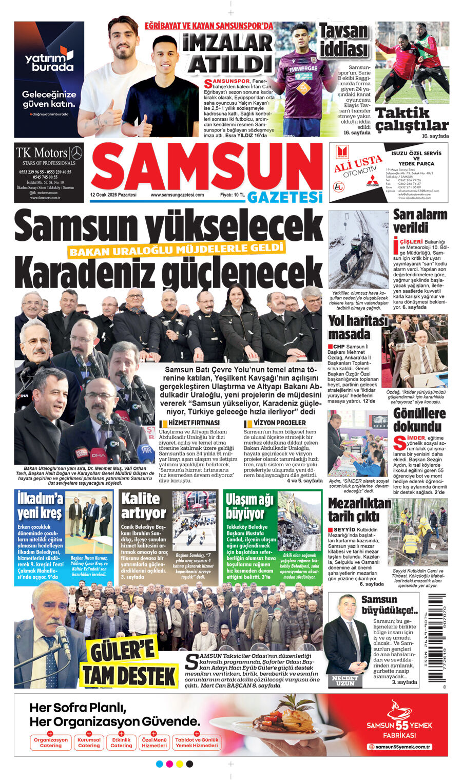 12 Ocak Pazartesi Samsun Gazetesi