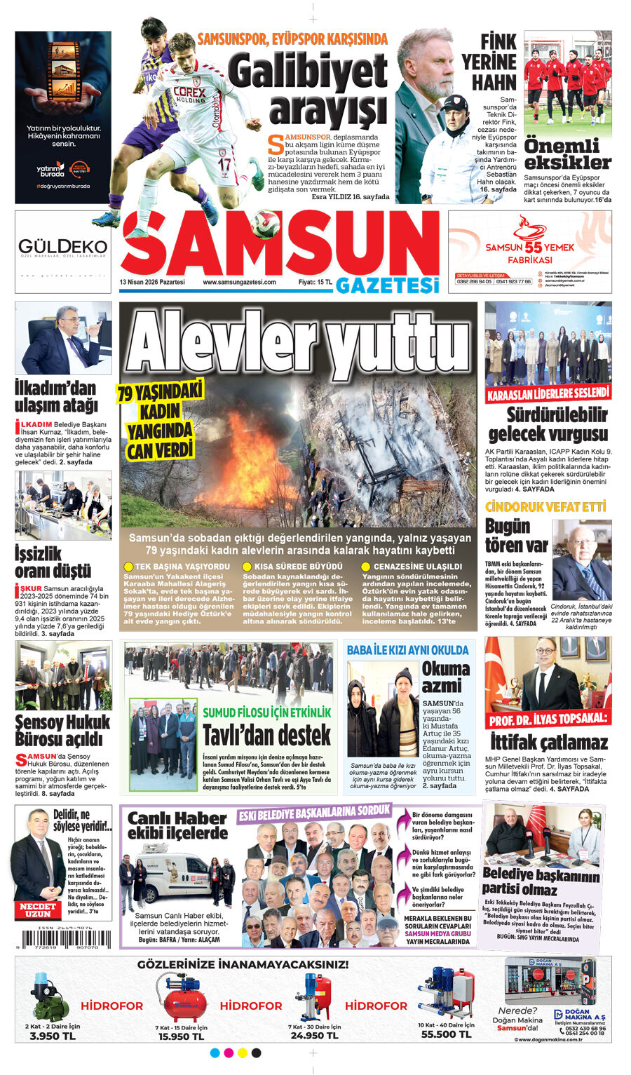 13 Nisan Pazartesi Samsun Gazetesi