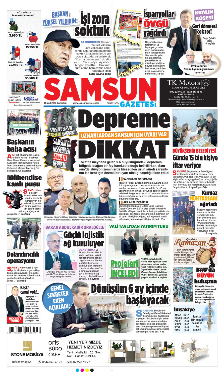 14 Mart Cumartesi Samsun Gazetesi
