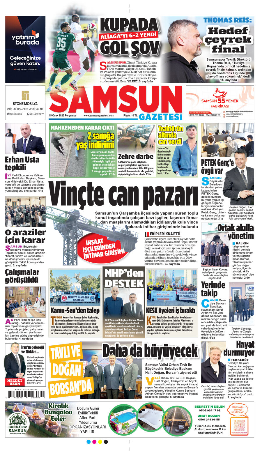 15 Ocak Perşembe Samsun Gazetesi