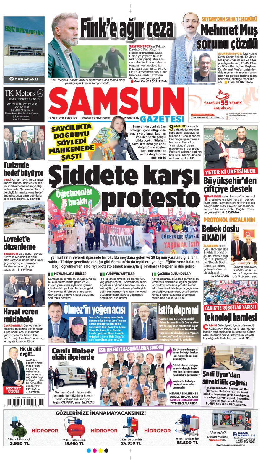 16 Nisan Perşembe Samsun Gazetesi
