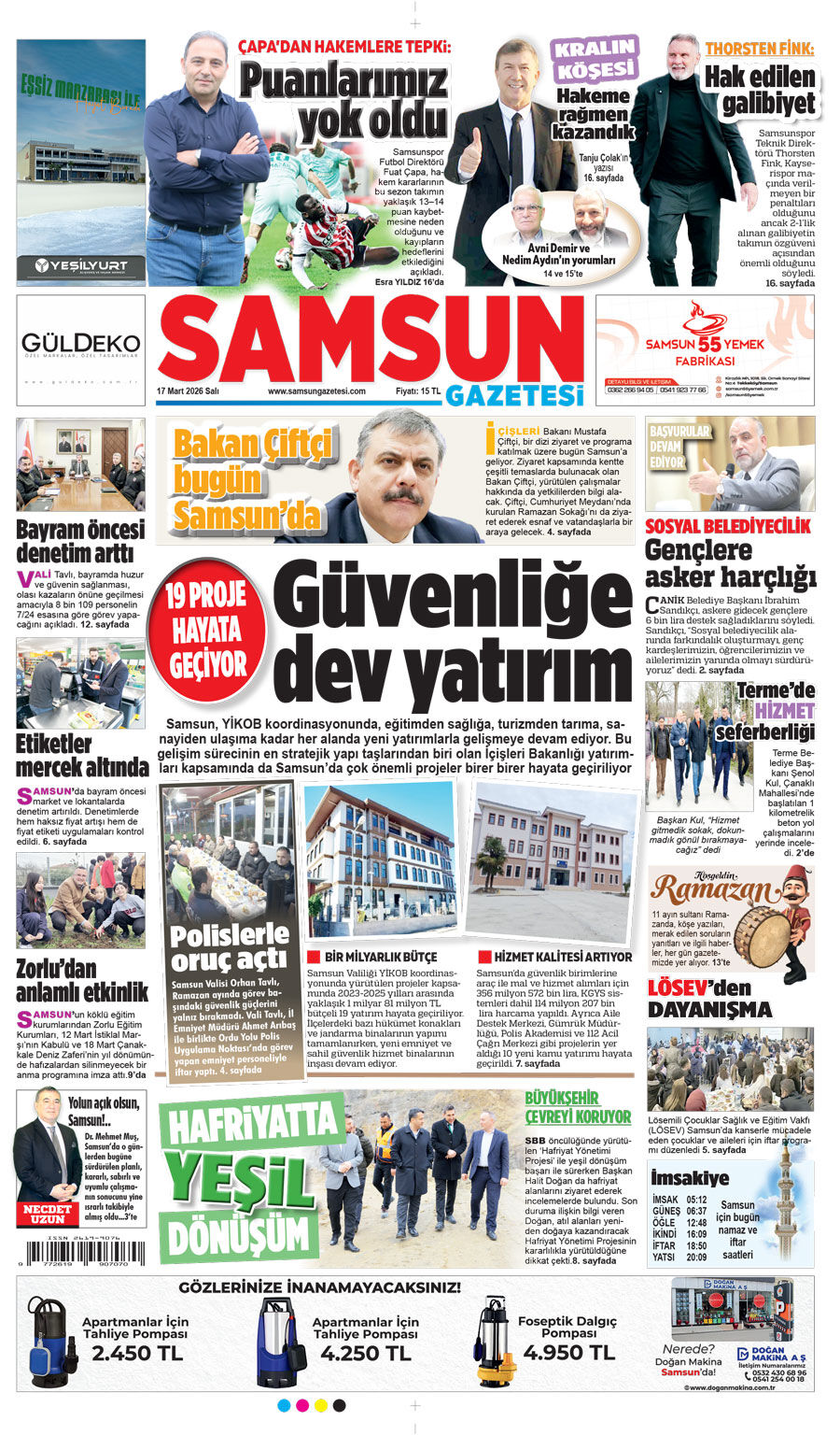 17 Mart Salı Samsun Gazetesi