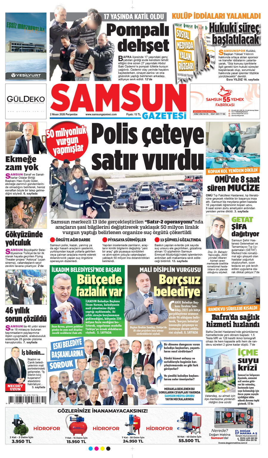 2 Nisan Perşembe Samsun Gazetesi
