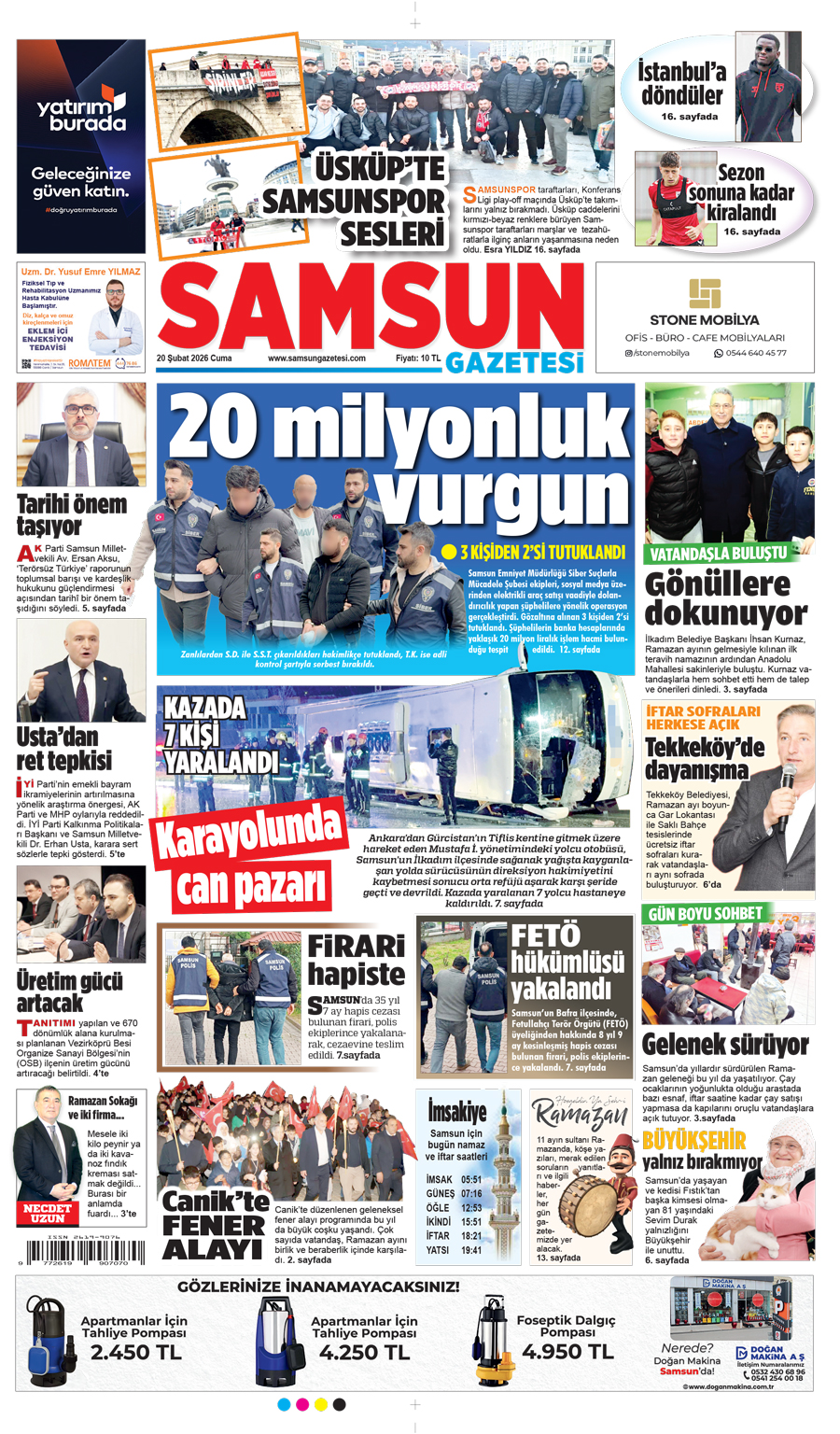 20 Şubat Cuma Samsun Gazetesi
