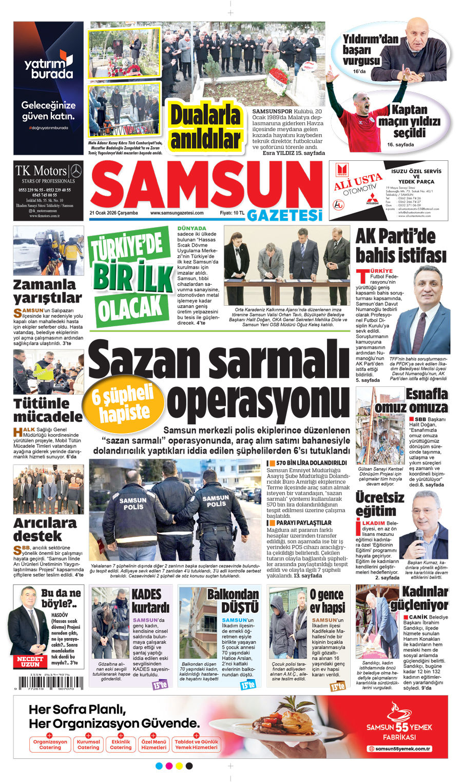 21 Ocak Çarşamba Samsun Gazetesi