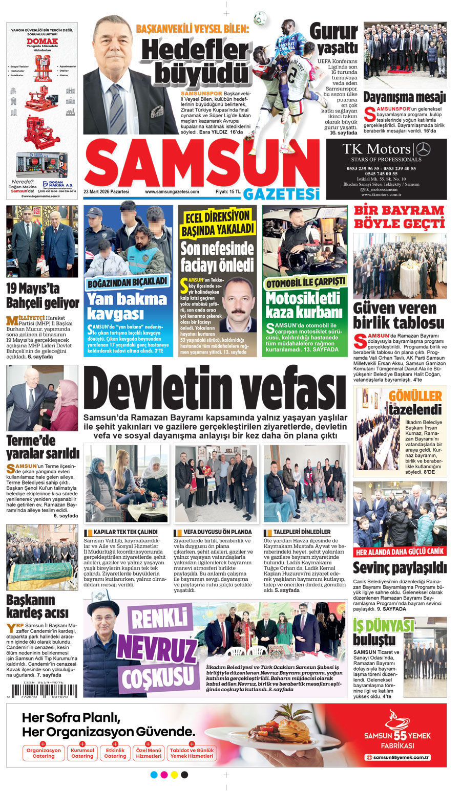23 Mart Pazartesi Samsun Gazetesi