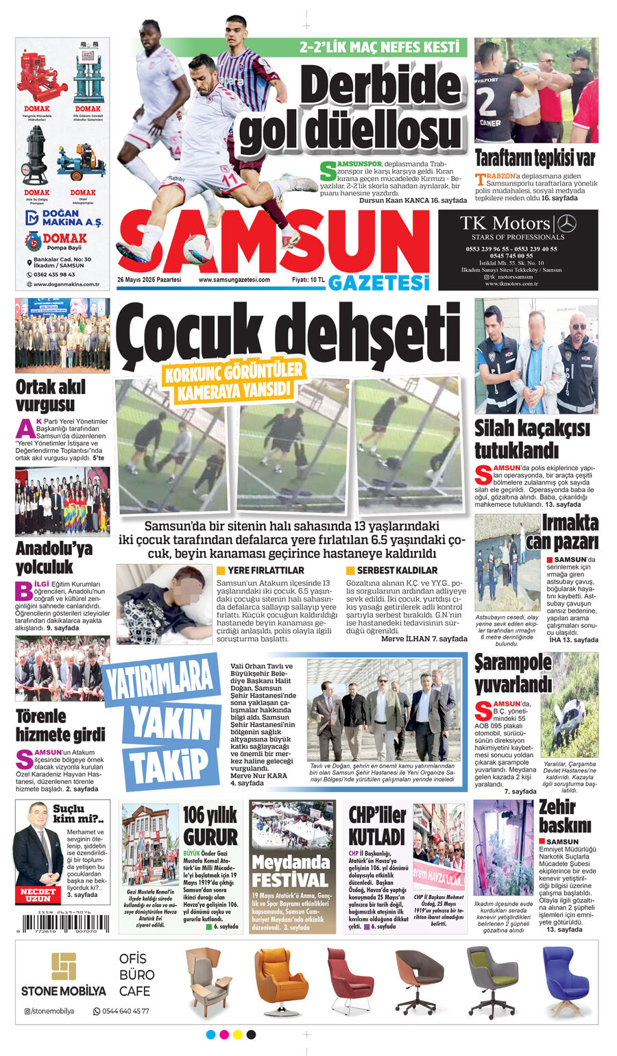 26 Mayıs Pazartesi Samsun Gazetesi