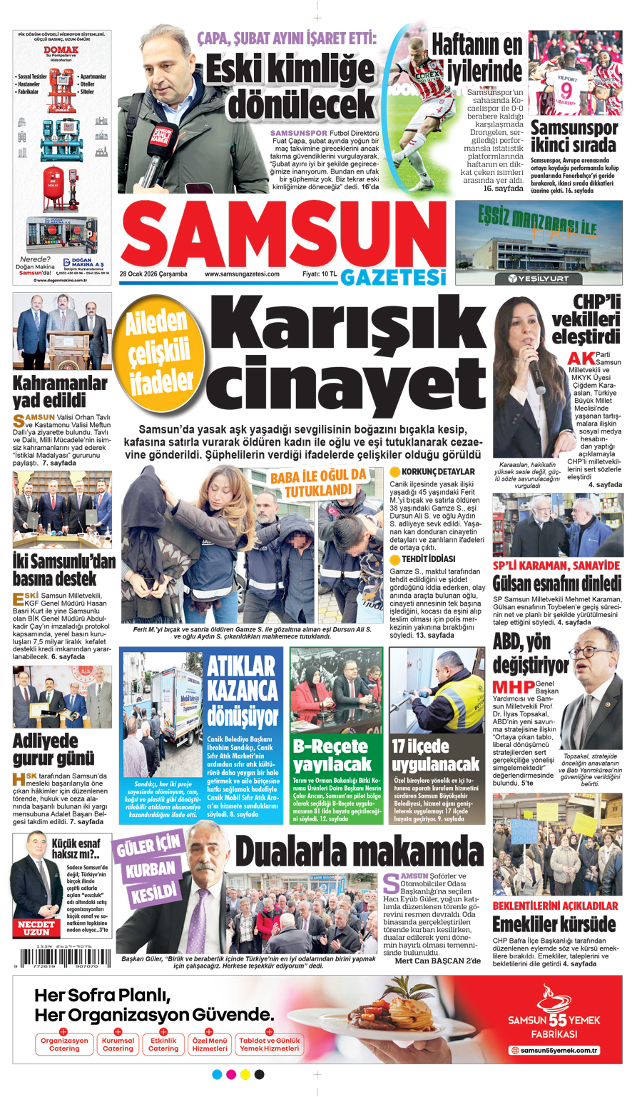 28 Ocak Çarşamba Samsun Gazetesi