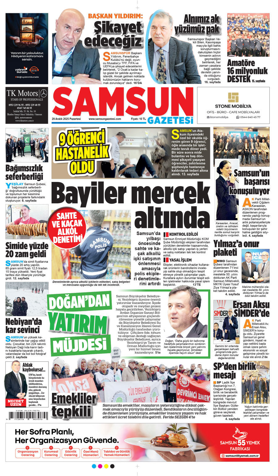 29 Aralık Pazartesi Samsun Gazetesi