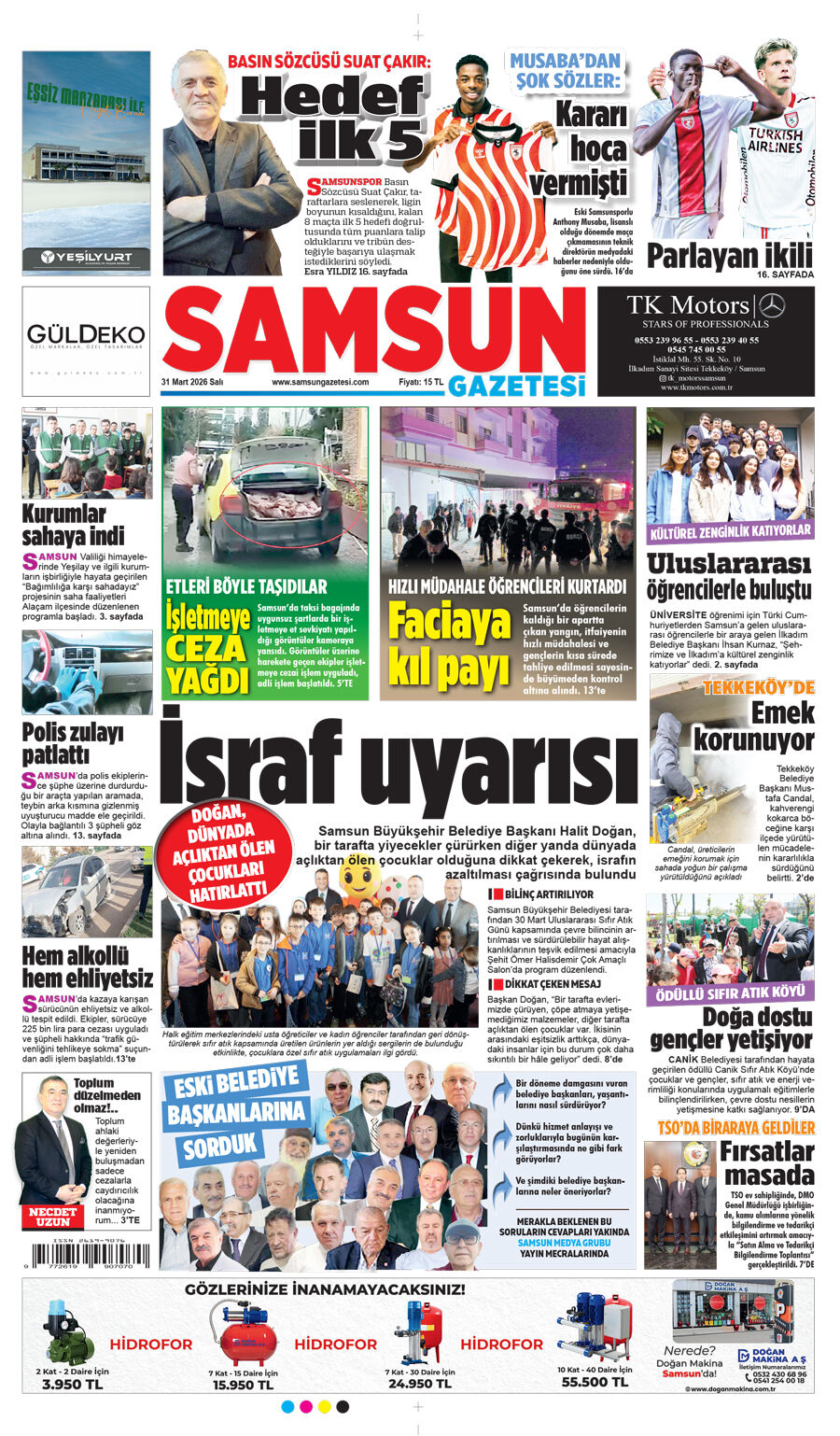 31 Mart Salı Samsun Gazetesi