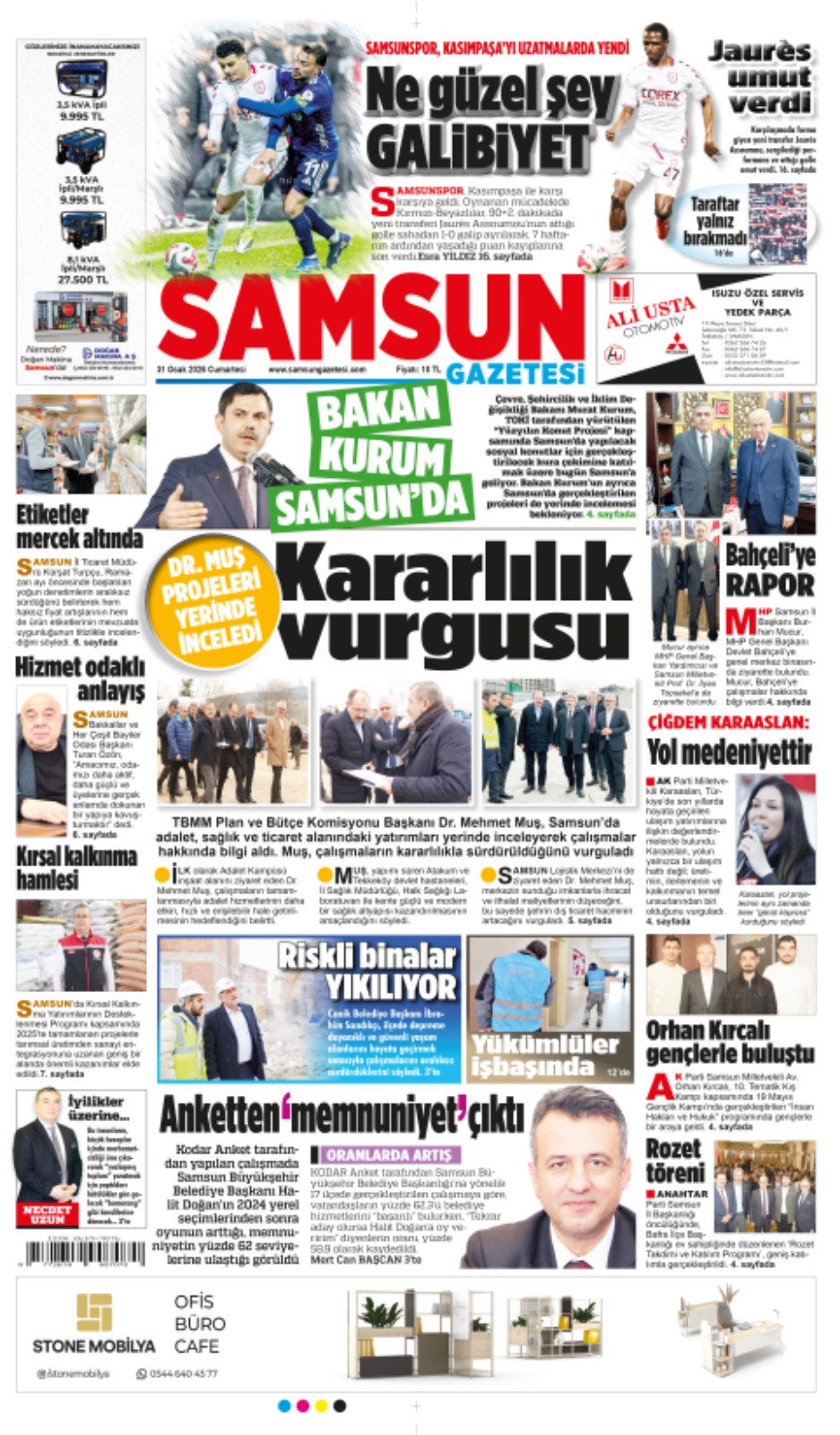 31 Ocak Cumartesi Samsun Gazetesi
