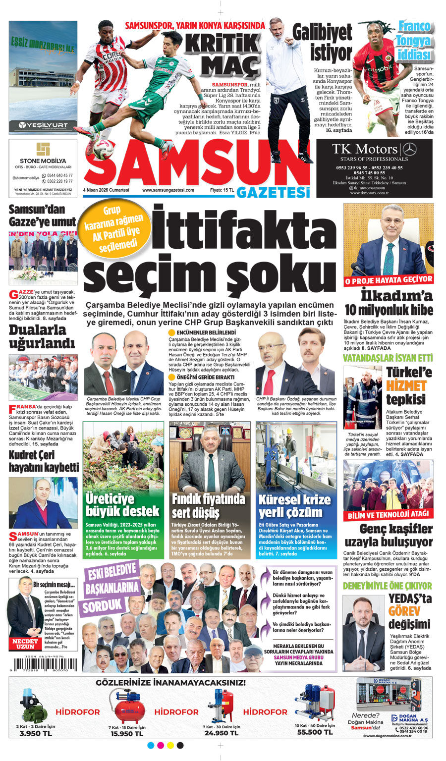 4 Nisan Cumartesi Samsun Gazetesi
