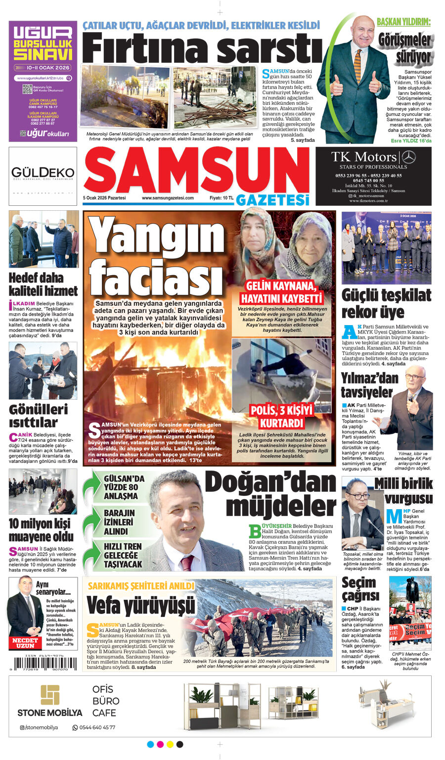 5 Ocak Pazartesi Samsun Gazetesi