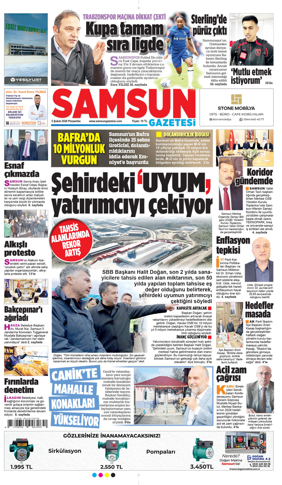 5 Şubat Perşembe Samsun Gazetesi