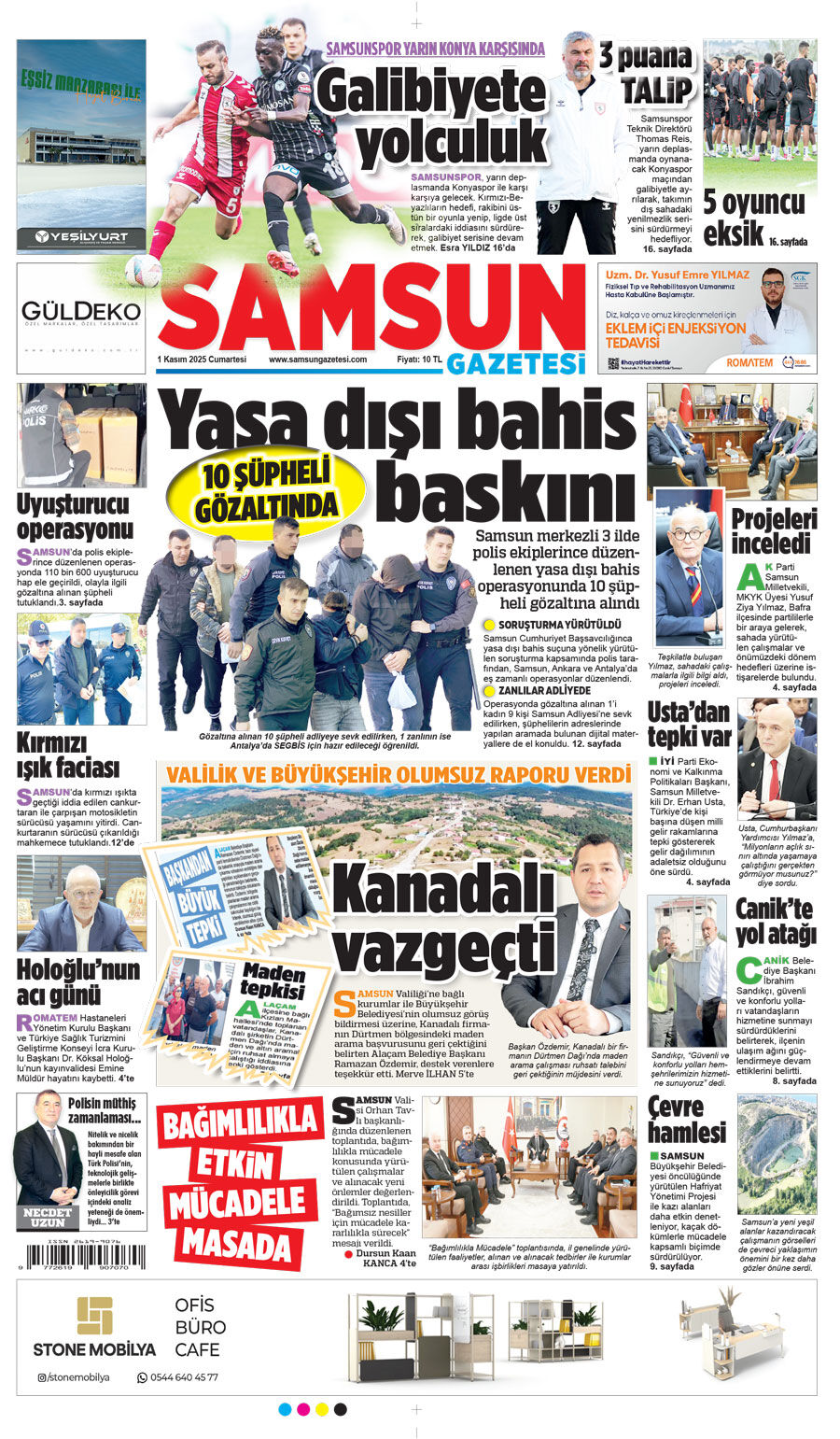 Samsun Gazetesi 1 Kasım Cumartesi