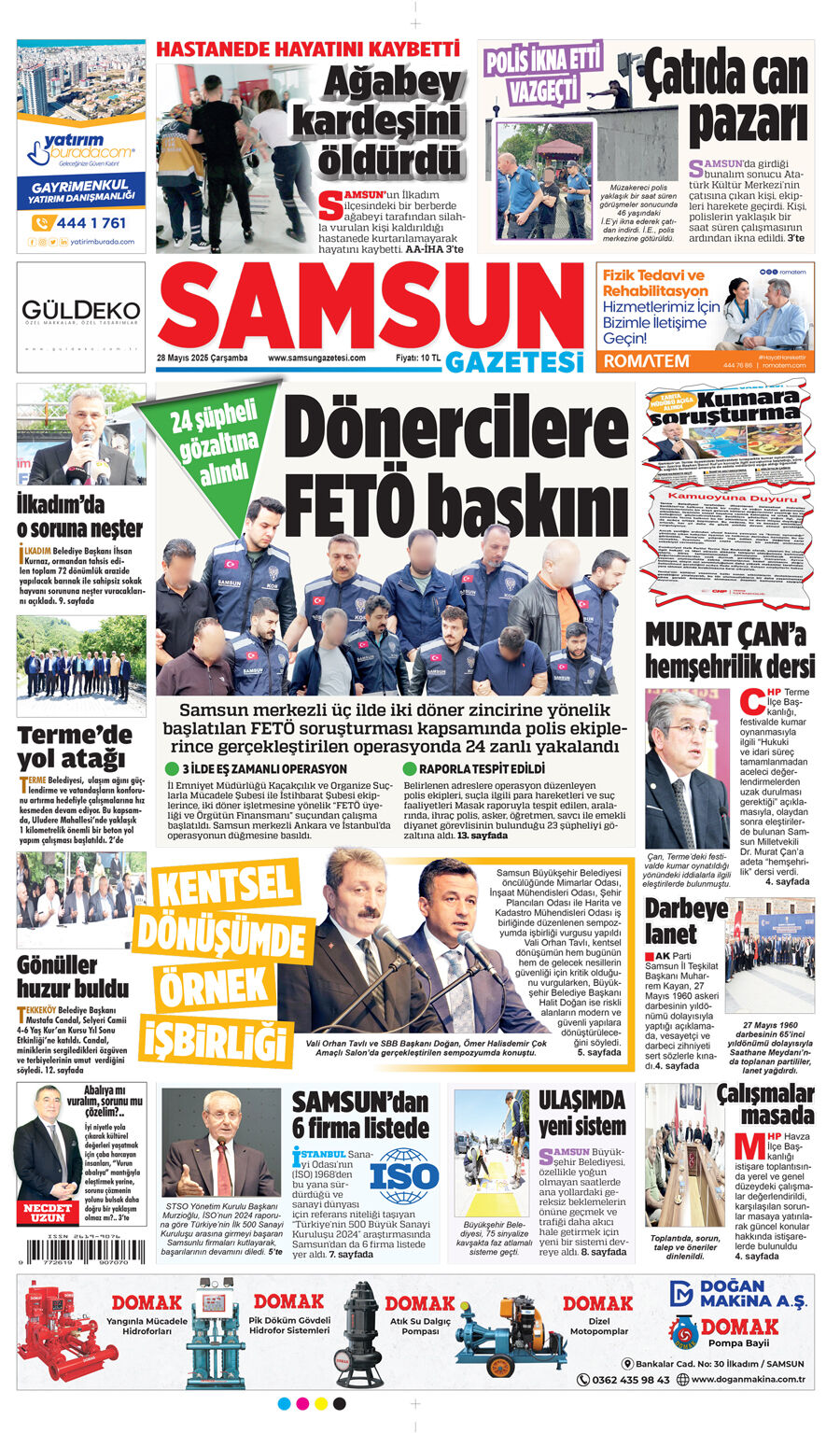Samsun Gazetesi 28 Mayıs Çarşamba
