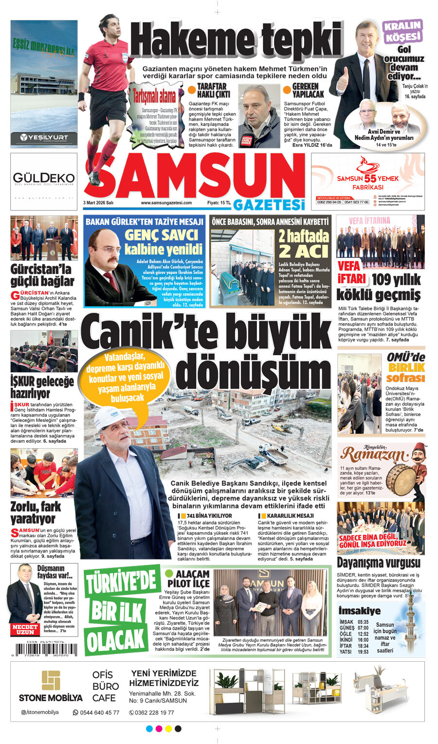 Samsun Gazetesi 3 Mart Salı