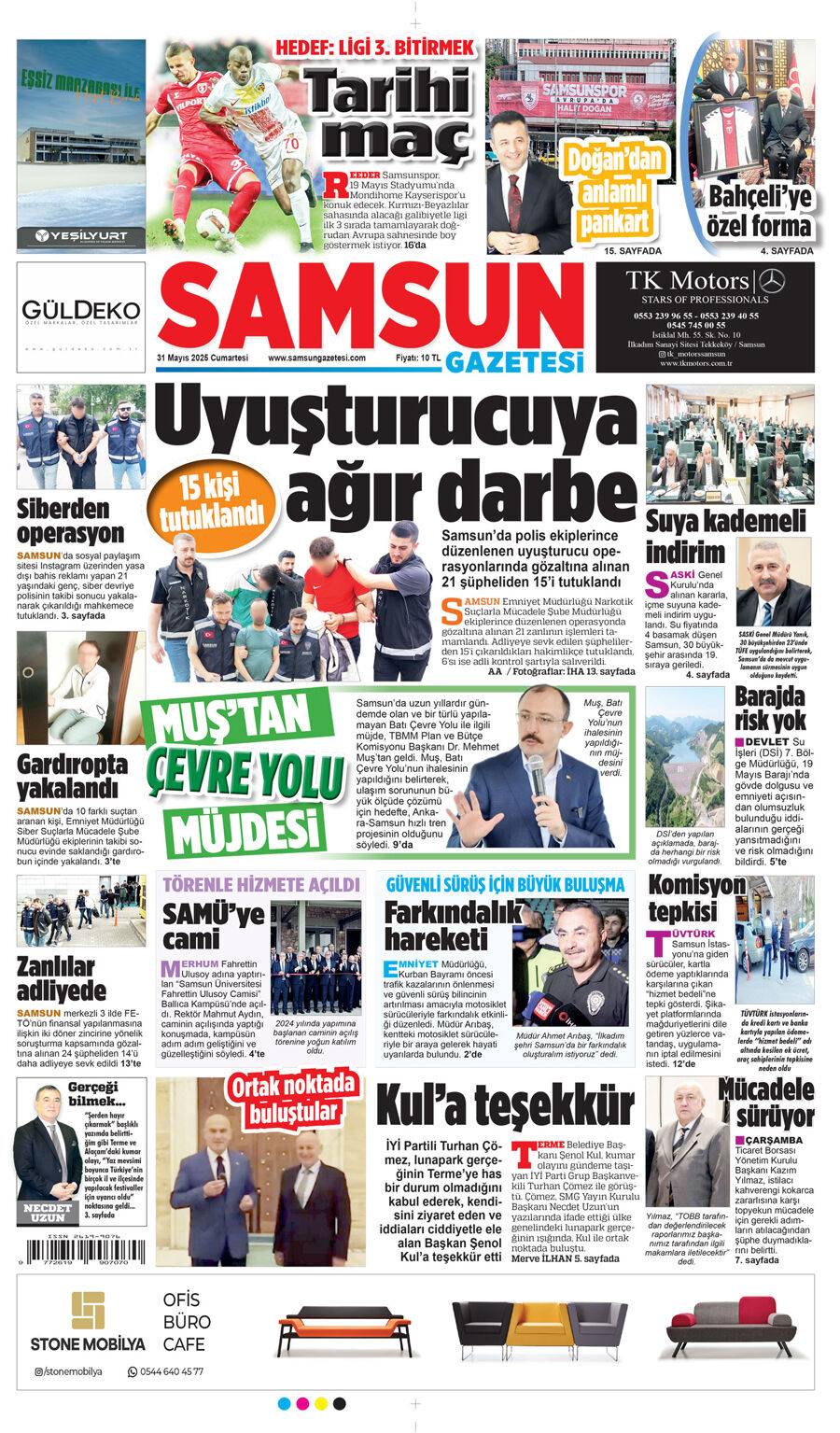 Samsun Gazetesi 31 Mayıs Cumartesi
