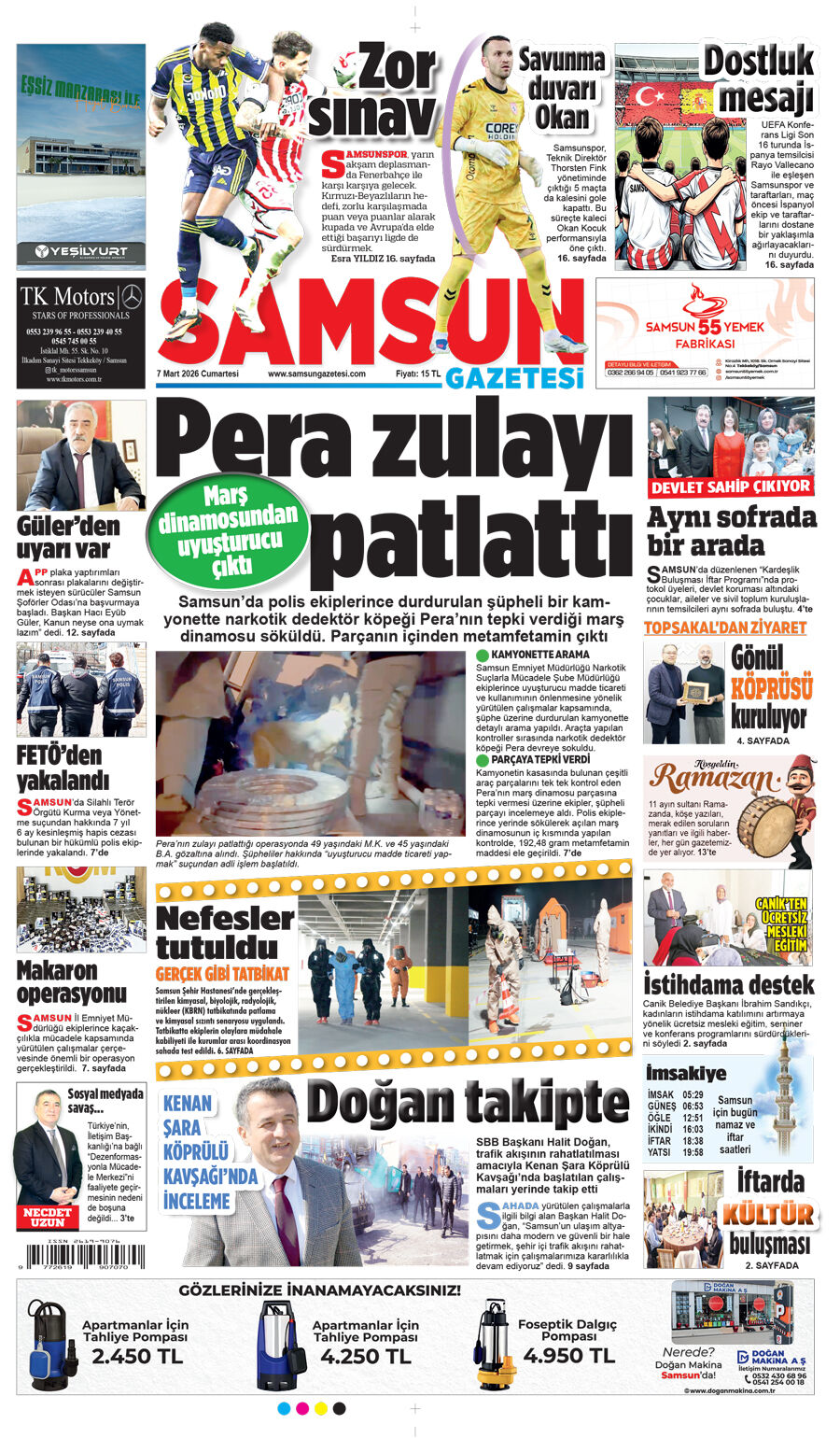 Samsun Gazetesi 7 Mart Cumartesi