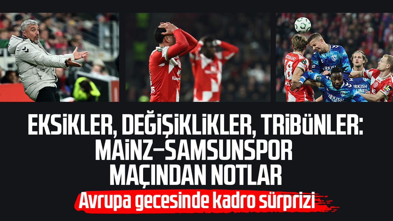UEFA Konferans Ligi'nin 6. haftasında Alman temsilcisi Mainz 05'e konuk olan Samsunspor'da teknik direktör Thomas Reis, son oynanan RAMS Başakşehir maçına göre kadroda birisi zorunlu 2 değişiklik yaptı. Alman teknik adam, Süper Lig'de son oynadıkları RAMS Başakşehir müsabakasına göre UEFA'ya bildirilen listede isimi yer almayan Cherif Ndiaye ile Soner Gönül'ün yerine Mouandilmadji ve Logi Tomasson'a ilk 11'de şans verdi. Samsunspor, Mainz 05 maçına Okan Kocuk, Zeki Yavru, Satka, Van Drongelen, Tomasson, Ntcham, Makoumbou, Emre Kılınç, Holse, Musaba, Mouandilmadji ile başladı. Kırmızı-beyazlı takımın yedek kulübesinde Posiadala, Efe Berat Törüz, Mendes, Soner Aydoğdu, Tahsin Bülbül, Polat Yaldır, Berovkovic, Soner Gönül ve Yunus Emre Çift görev bekledi.