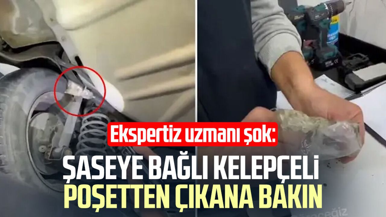 Bir oto ekspertiz merkezinde yapılan araç kontrolü sırasında ilginç bir olay yaşandı. İnceleme yapan uzman, aracın alt kısmındaki şaseye kelepçeyle tutturulmuş bir poşet fark etti.