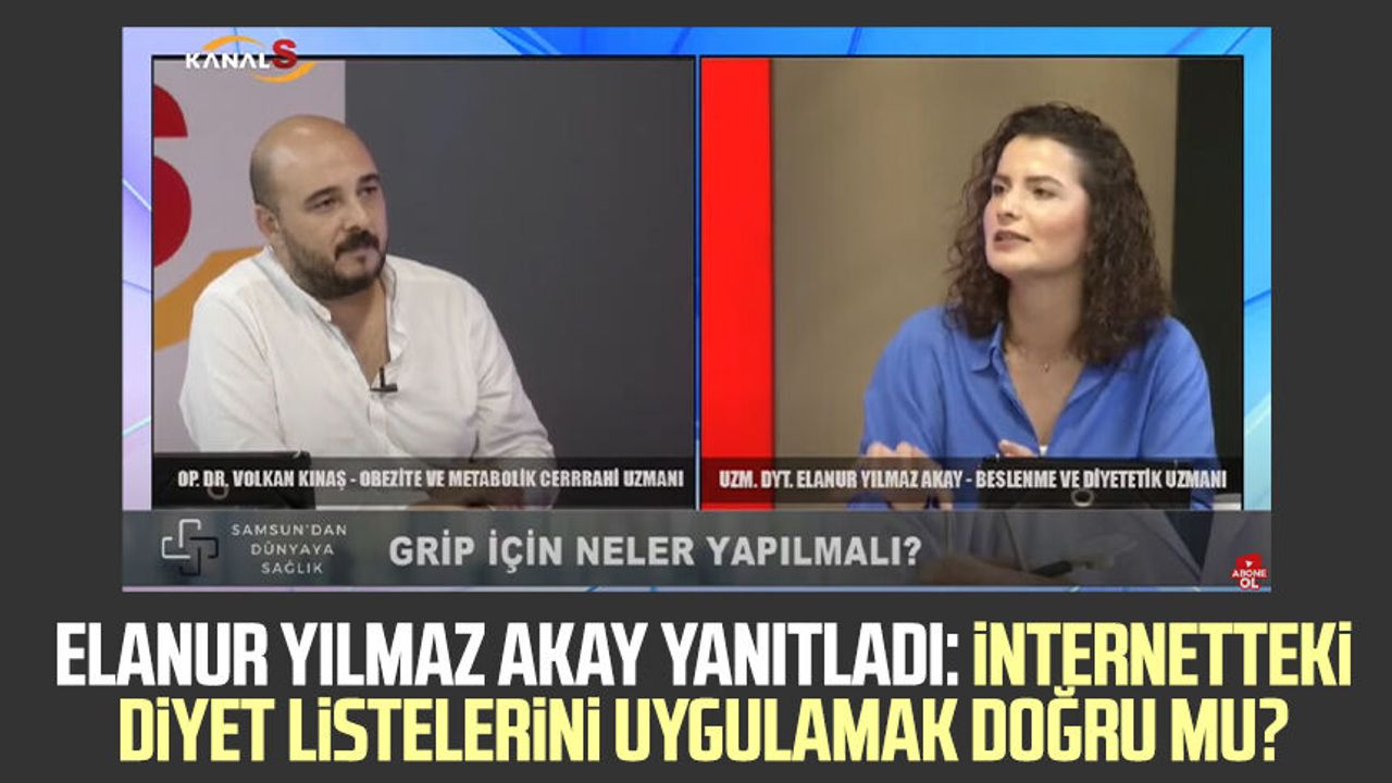 Diyetisyen Elanur Yılmaz Akay, Kanal S ekranlarında Op. Dr. Volkan Kınaş'ın konuğu oldu. Akay, "Kilo almak için neler yapılmalı?", "Gebeler nasıl diyet yapmalı?", "Emzirme döneminde diyet yaparken neye dikkat edilmeli?", "İnternetteki diyet listeleri gerçekçi mi?", "Yeni diyet yöntemleri başarılı mı?", "Kış aylarında nasıl beslenilmeli?", "Hayat boyu diyet mümkün mü?", "Tüp mide ve bypass ameliyatı sonrasında beslenme farklılıkları", "Grip için öneriler" konularına ilişkin önemli açıklamalarda bulundu.