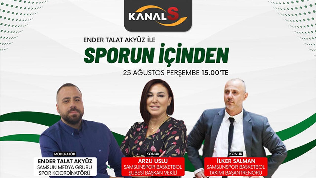 Kanal S ekranlarında yayınlanan Samsunspor ve Samsunspor Basketbol'a dair her şeyin konuşulacağı Ender Talat Akyüz ile Sporun İçinden programına 25 Ağustos Perşembe günü saat 15.00'de Samsunspor Basketbol Şubesi Başkan Vekili Arzu Uslu ve Samsunspor Basketbol Takımı Başantrenörü İlker Salman konuk oluyor.