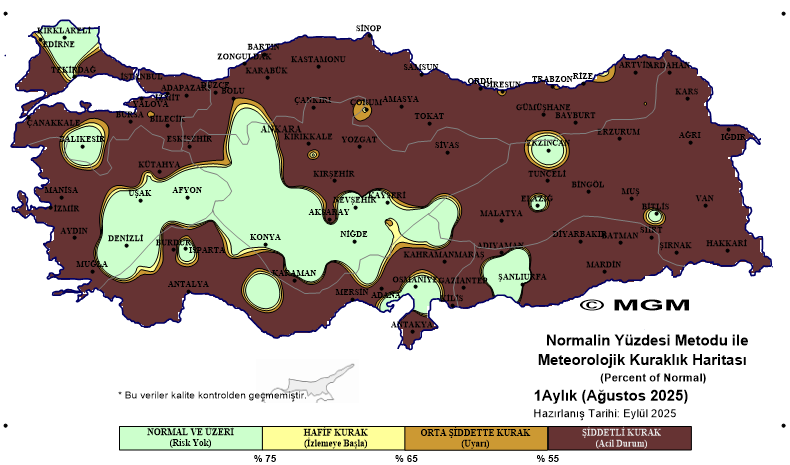 Şiddetli kuraklık, bölgedeki yağışların uzun yıllar ortalamasının oldukça altında kaldığını ve ciddi bir meteorolojik kuraklık yaşandığını gösteriyor. Bu durum özellikle tarım, içme suyu temini ve ekosistem açısından önemli tehditler barındırıyor.