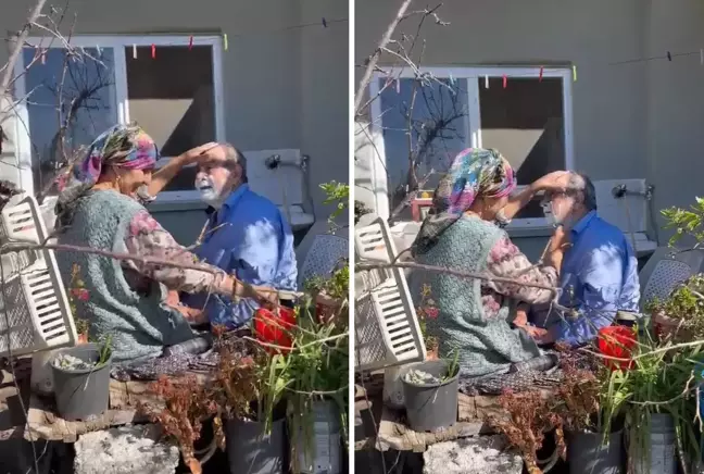 Antalya'nın Serik ilçesine bağlı Cumalı Mahallesi'nde 8 Mart Dünya Kadınlar Günü'nde çekilen görüntü yürekleri ısıttı. 65 yaşındaki Zehra Ekşili, sağ kolu felçli olan 71 yaşındaki eşi Salih Ekşili'yi evinin balkonunda sakal tıraşı yaparken görüntülendi.