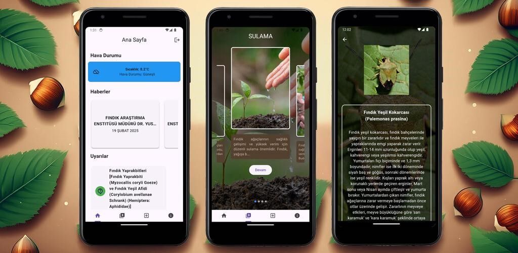 Karadeniz Tarımsal Araştırma Enstitüsü, Samsun Üniversitesi ve TÜBİTAK ortaklığıyla geliştirilen yapay zekâ algoritmaları sayesinde, fındık bitkilerinde oluşan leke, çürüklük ve zararlı istilaları anında tespit edilebiliyor. Mobil uygulama aynı zamanda budama, gübreleme ve ilaçlama gibi kritik tarımsal işlemler için üreticilere zamanında hatırlatmalar yaparak tarım süreçlerinin daha verimli yönetilmesini sağlıyor.