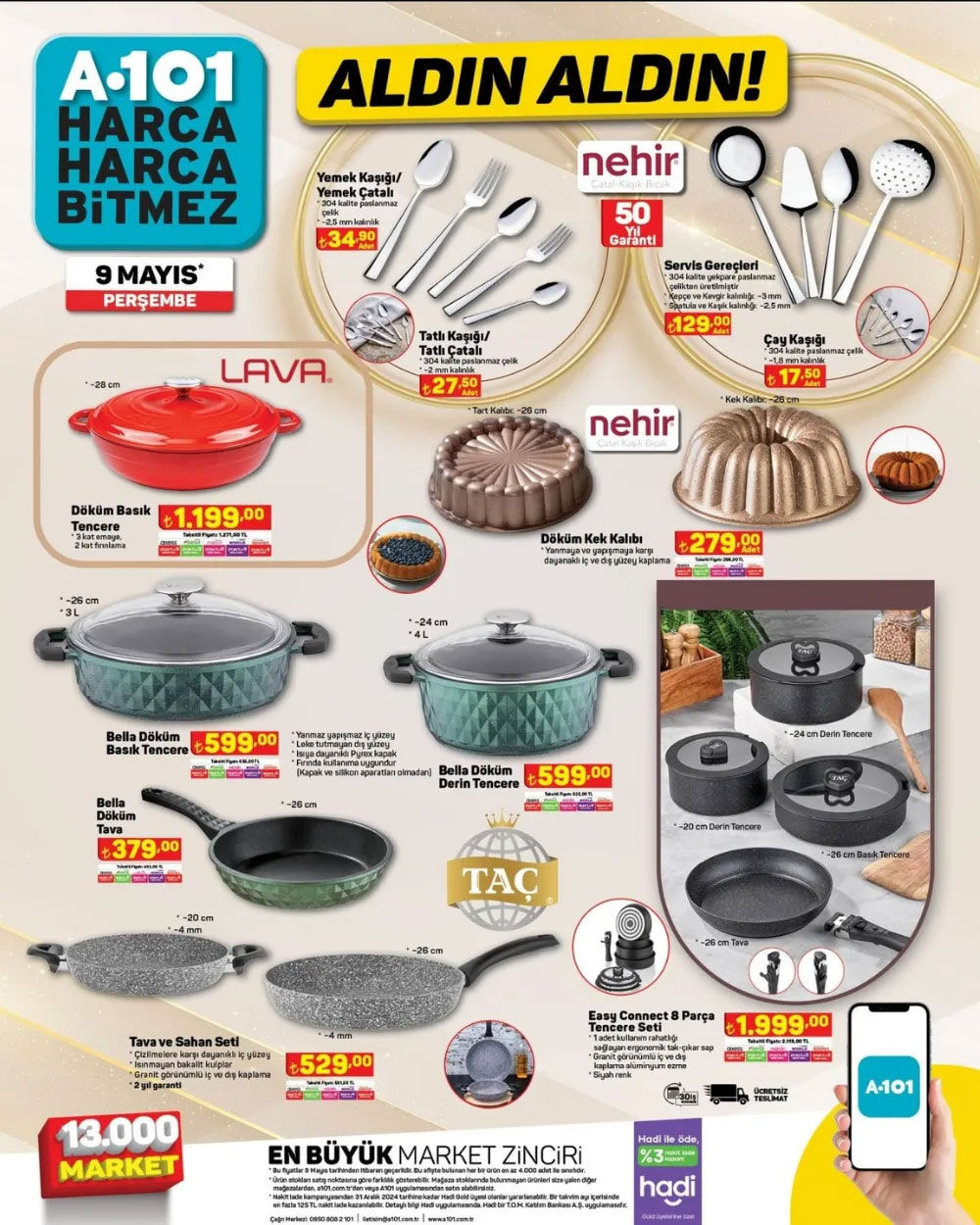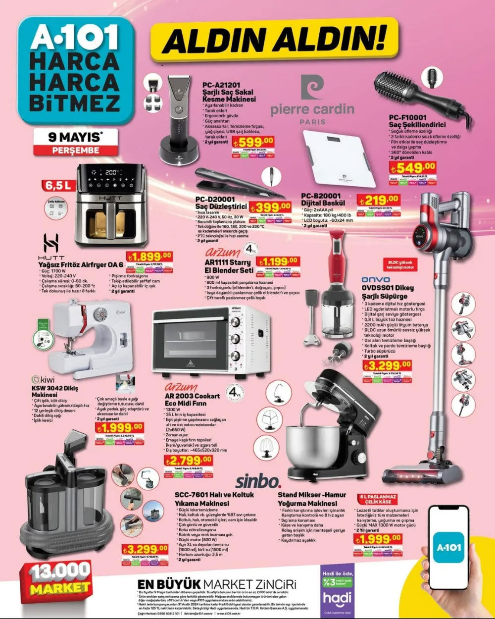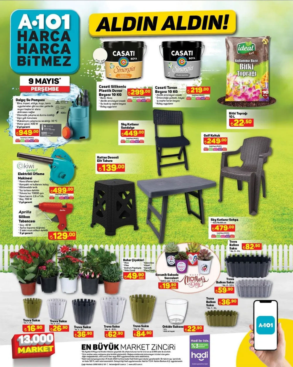A101 Mayıs ayı indirimleri indirimleri devam ediyor.9 Mayıs A101 markete beyaz eşyadan, televizyona, airfryerdan, hamur yoğurma makinesine, boyadan, nevresim takımına, bavuldan, çalışma koltuğuna onlarca indirimli ürün raflarda yerlerini alıyor.