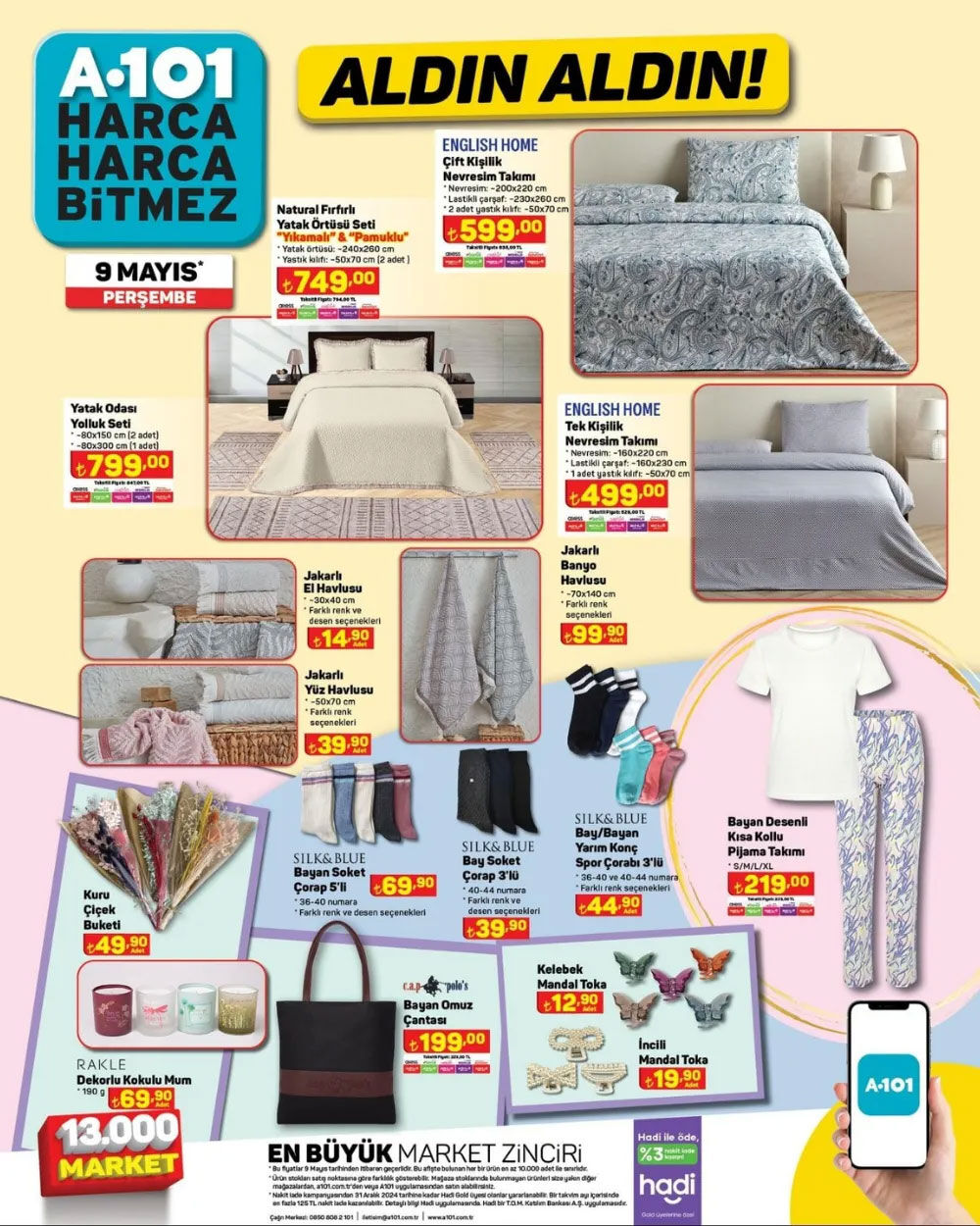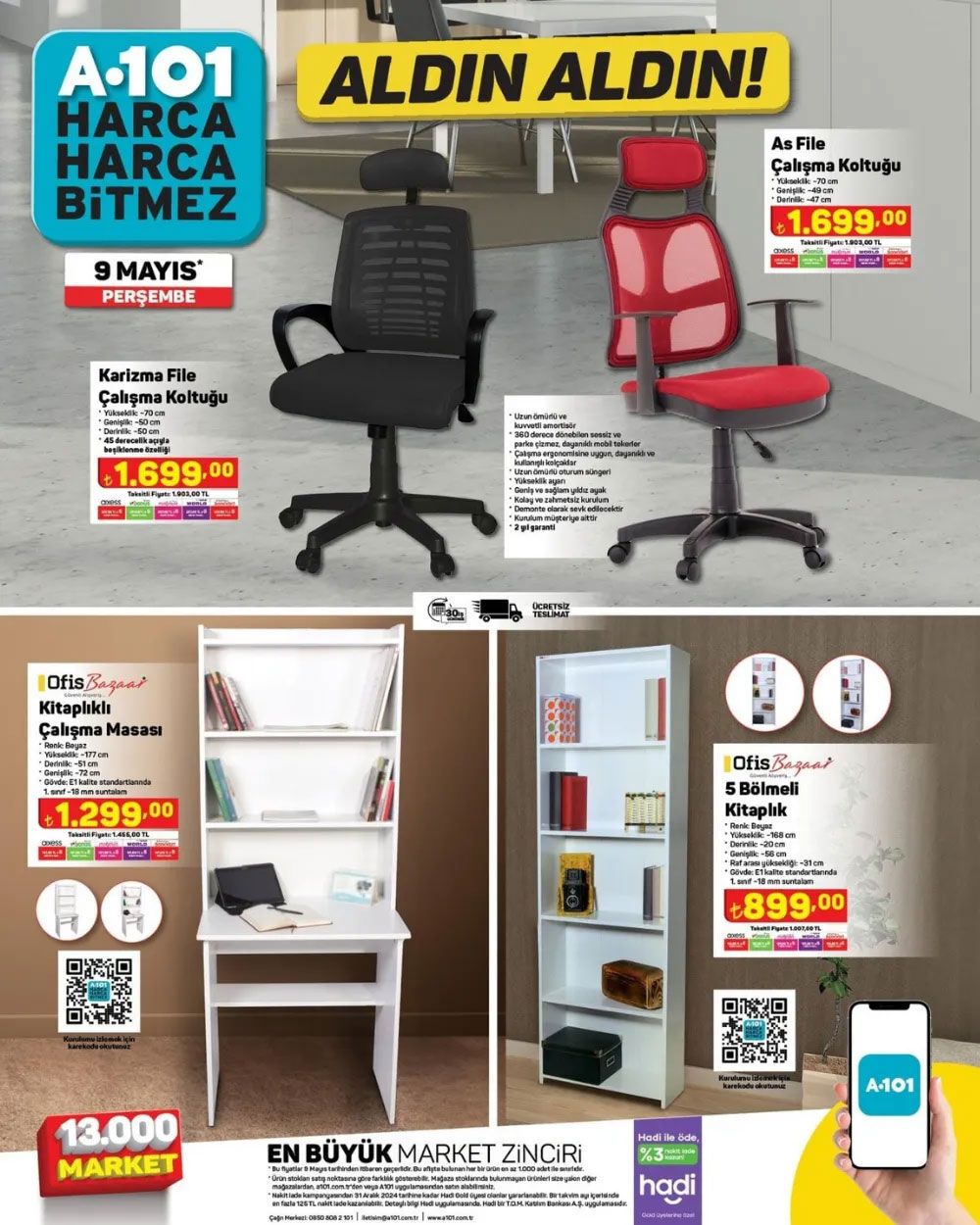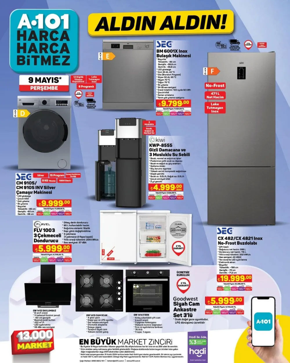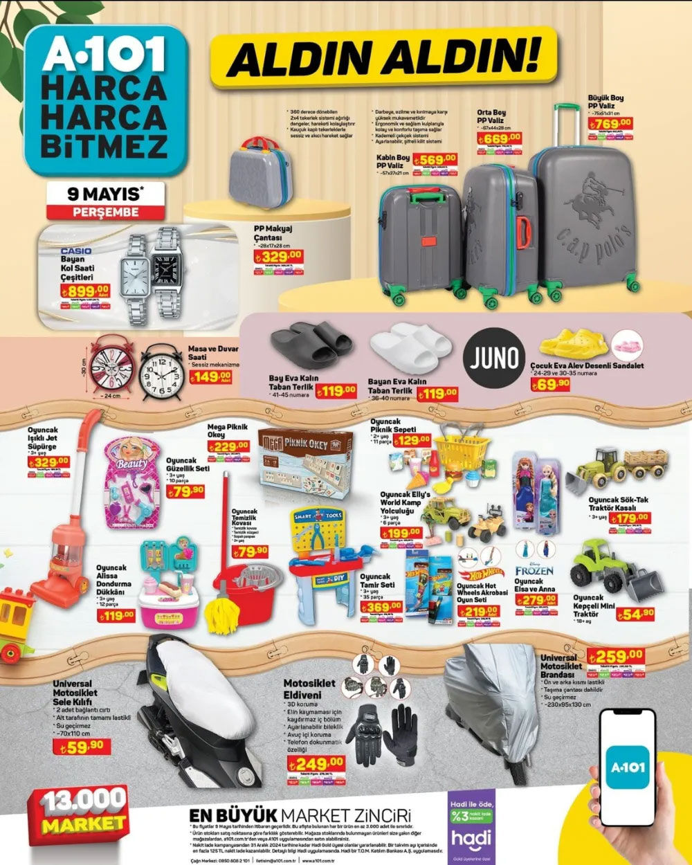 A101 Mayıs ayı indirimleri indirimleri devam ediyor.9 Mayıs A101 markete beyaz eşyadan, televizyona, airfryerdan, hamur yoğurma makinesine, boyadan, nevresim takımına, bavuldan, çalışma koltuğuna onlarca indirimli ürün raflarda yerlerini alıyor.
