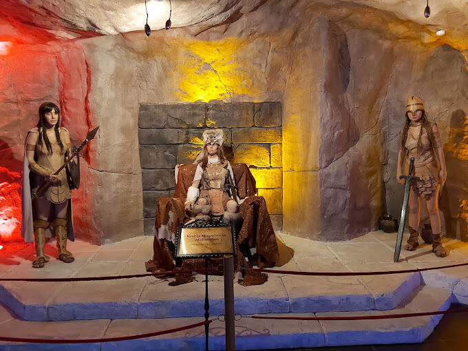 Amazon Köyü’nde yer alan bölümlerden de bahseden Arzu Kaplan, “Amazon Köyünde bir zindanımız var. Zindanda erkek köleler bulunuyor. 2 adet çadırımız var. Çadırın birinde savaş sonrası dinlenen Amazonlar var. Diğer çadırda ise savaştan gelmiş ve kaybettikleri arkadaşları için yas tutan Amazonlar var. Mağaranın içerisindeki alanda ise tahtında oturan kraliçe Hippolyte ve muhafızları bulunuyor. Sinevizyonumuzda da Samsun’un tanıtımını izletiyoruz. İlerdeki bölümde de Amazon aslanları bulunuyor. Onlar da Amazon kadınlarının bayrağının simgesi olarak dikkat çekiyor. Aslanın birinde Amazon kadınlarının katıldığı Truva Savaşı anlatılıyor. Amazon Kraliçesi Penthesilea ve Yunan komutan Akhilleus (Achille - Aşil) arasındaki sahne gösteriliyor. Diğer aslanda da Samsun tanıtım filmi gösteriliyor. Vatandaşlar 3D gözlükler ile Samsun’u izliyorlar” diye konuştu.