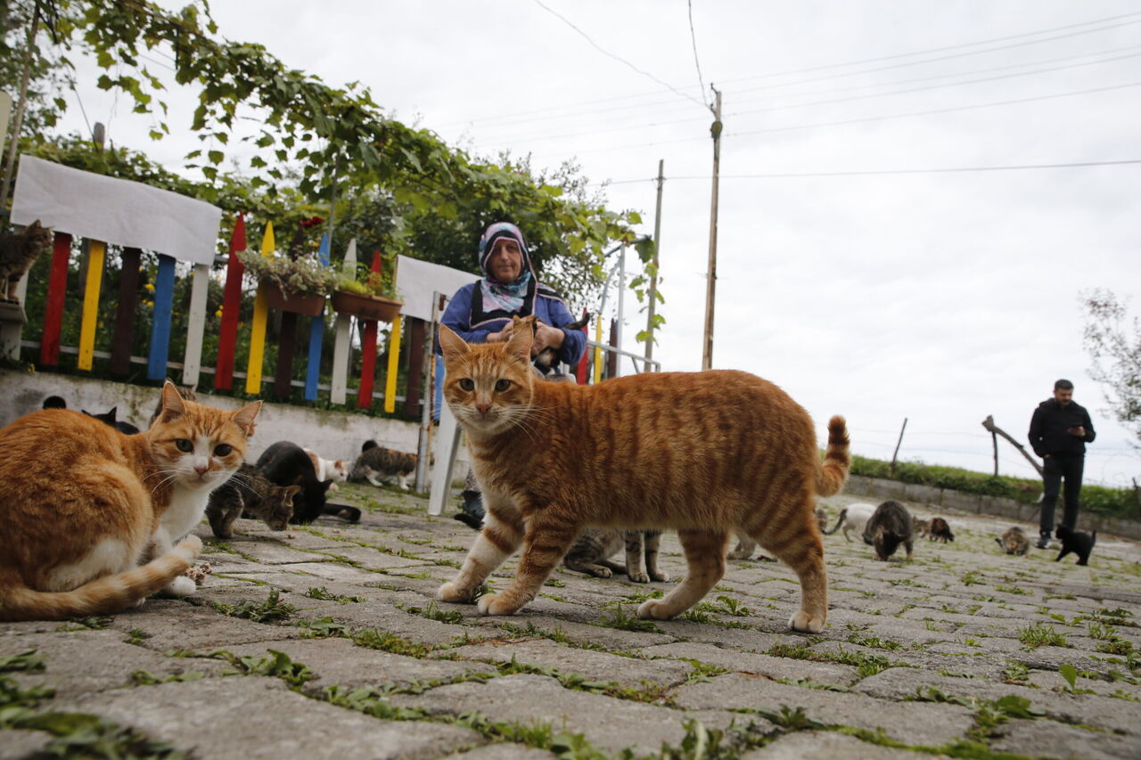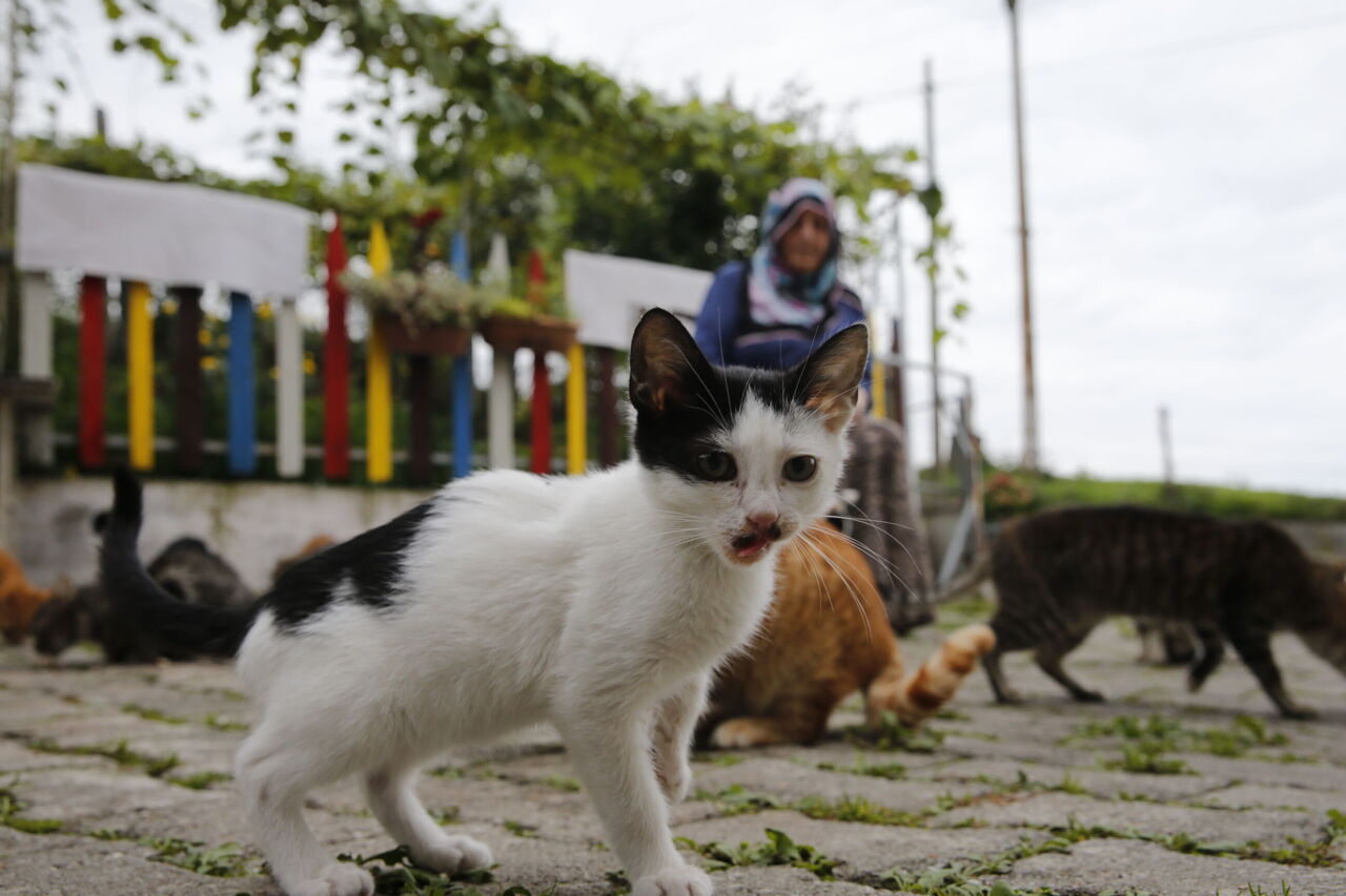 Samsun'un Tekkeköy ilçesinde yaşayan 55 yaşındaki Ayşe Yalçınkaya, evinin bahçesinde yaklaşık 100 kediye bakıyor.