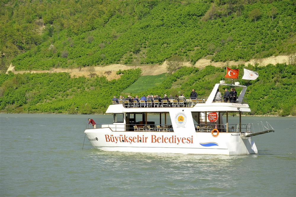 Suat Uğurlu Baraj Gölü üzerinde, misafirlerin Eynel Köprüsü ile Kirazlık Adası arasında gezmeleri için Samsunum 2 Gemisi ve küçük ölçekteki gezi teknesi hizmet vermektedir. Bununla birlikte geminin yanaşması için ilçemizin iki noktasında, Orhangazi Mahallesi ve Kirazlık Adası, iskele bulunmaktadır.