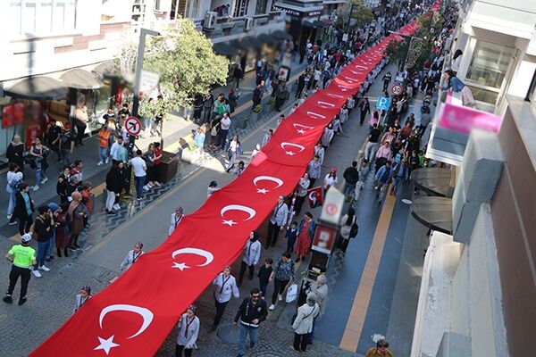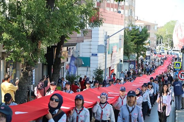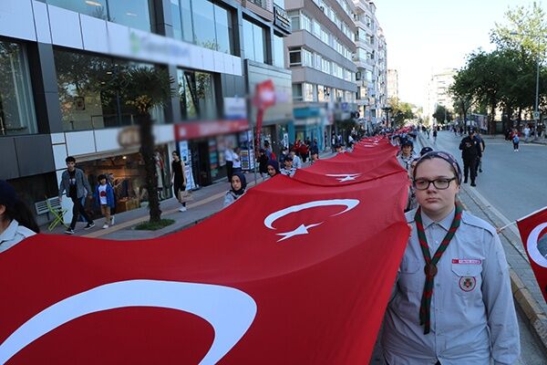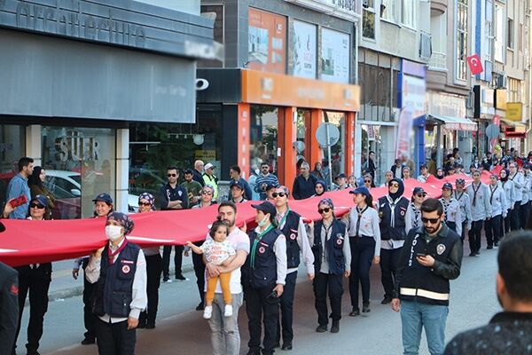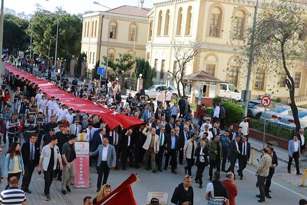 Samsun'da 19 Mayıs Gençlik ve Spor Bayramı'nın 103'üncü yıl dönümü nedeniyle 1919 metrelik bayrak yürüyüşü yapıldı
